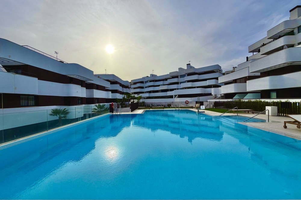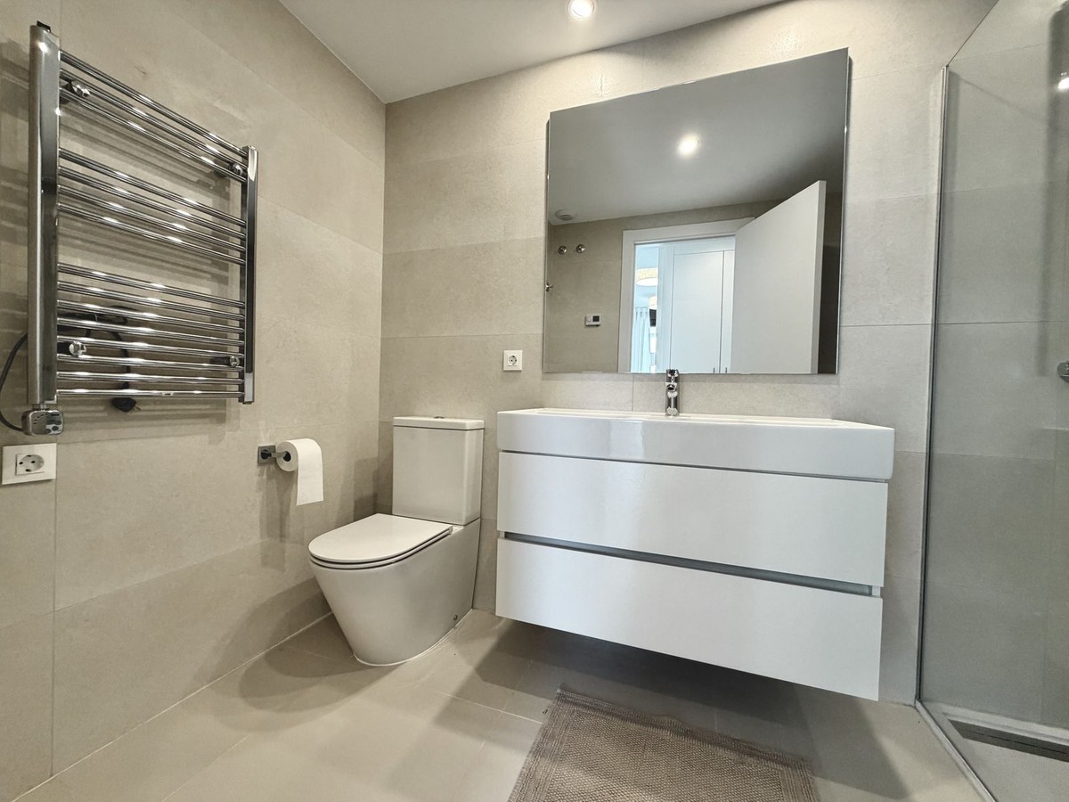 - This stylish 2-bedroom, 2-bathroom ground-floor apartment is located within the exclusive South Place development in Estepona. The open-plan living area with a modern kitchen opens onto a spacious private terrace — perfect for enjoying the Mediterranean lifestyle. Upgraded beyond the developer’s standard specifications, the apartment includes several premium features: kitchen island; all built-in appliances by Siemens; washer-dryer; additional fitted wardrobes; underfloor heating in bathrooms; bathtub in one bathroom (instead of two showers); heated towel rails. Ideally situated in a peaceful residential area with excellent access to all amenities: 10 minutes’ walk to Estepona Marina, 10 minutes’ walk to the beach, 5 minutes’ drive to the town centre. Residents can enjoy beautifully designed communal areas with adult and children’s pools, a gym, and landscaped gardens. A perfect blend of comfort, design, and location — just a short walk from the sea.
