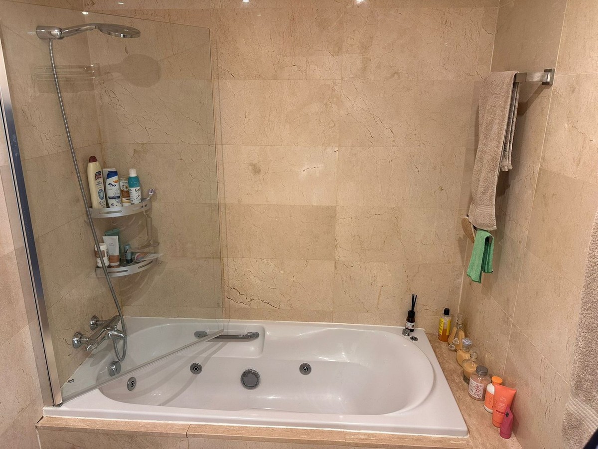 - Opportunity! Penthouse on 1st line Azata Golf in Estepona fully furnished and equipped - ready to move in or rent out. The penthouse os located on the 2nd and last floor, has a built area of 135 sqm with a large south-east facing terrace of 26 sqm. Beautiful views torwards the golf course to the surroundings and the hills behind. Distributed in entrance area leading to the spacious living room with open fireplace and outgoing to the large private terrace. New modern kitchen fully fitted and equipped with a utility room beside. High quality and luxury fittings. 2 bedrooms and 2 bathrooms, one en-suite to the master bedroom. Features: creme marble floors, marble bathrooms, double glazing, electric sun blinds, aircondition hot/cold, elevator, garage and storage room, fully furnished, built-in wardrobes, video entrance phone, washing machine and dryer, rental license. Gated community with security service, 2 community swimming pools and children's pool, well maintenenced community gardens. Quiet residencial area, but only minutes away from the beaches and short drive to the port and town of Estepona. Minutes away from the new General Hospital of Estepona. The property is fully legal and comes with a holiday rental license. A perfect property for living the whole year in or having pleasant holidays as well as an investment opportunity and rental business. Spanish banks are offering up to 70% mortgage on purchase price.
