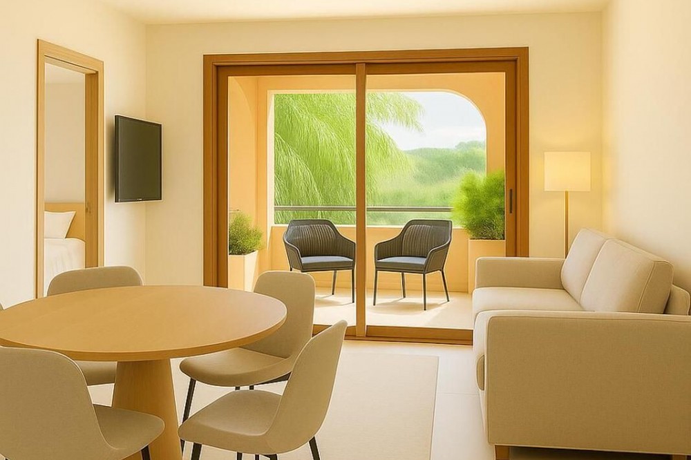 - Comprehensive Renovation with a Modern and Functional Style in El Campanario Urbanization Discover this spectacular 3-bedroom, 2-bathroom apartment (one of them en suite), located in the highly sought-after El Campanario urbanization—an exclusive and well-maintained community, perfect for enjoying peace, comfort, and quality of life. Just a 10-minute walk from Diana Park shopping center and 4 minutes from the prestigious El Campanario Club, which offers amenities such as a spa, gym, hair salon, restaurant, and more. Its proximity to a nursery also makes it an ideal choice for families. The complex features 24-hour security, beautifully maintained green areas, and several communal swimming pools that invite relaxation and enjoyment throughout the year. The master bedroom includes a cozy walk-in closet, and from both the bedroom and the living room you can access a spacious terrace offering unbeatable views of the stunning gardens and pool. The property also includes a private outdoor parking space within the community. The apartment is currently undergoing a full renovation, focused on contemporary design and premium finishes. At the heart of the home is an open-plan space integrating the living-dining area and modern kitchen—ideal for everyday living and entertaining guests. This home blends modern style with the timeless charm of a classic urbanization, offering design and comfort in every corner. Every detail has been carefully planned to create a magazine-worthy interior that perfectly balances aesthetics and functionality. The renovation is still in progress, giving you a unique opportunity to customize certain finishes if you contact us in time. We have attached illustrative renders showing the intended final result (not exact) and a detailed floor plan so you can visualize the full layout. Call now and schedule your visit to experience this exclusive project firsthand—located in one of the most desirable areas of the Costa del Sol.