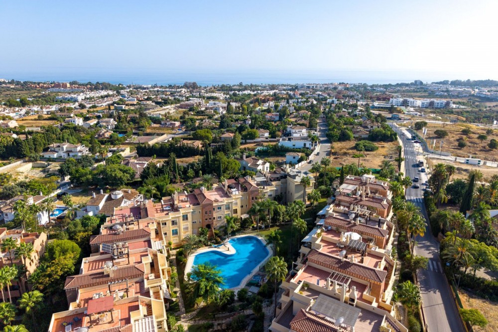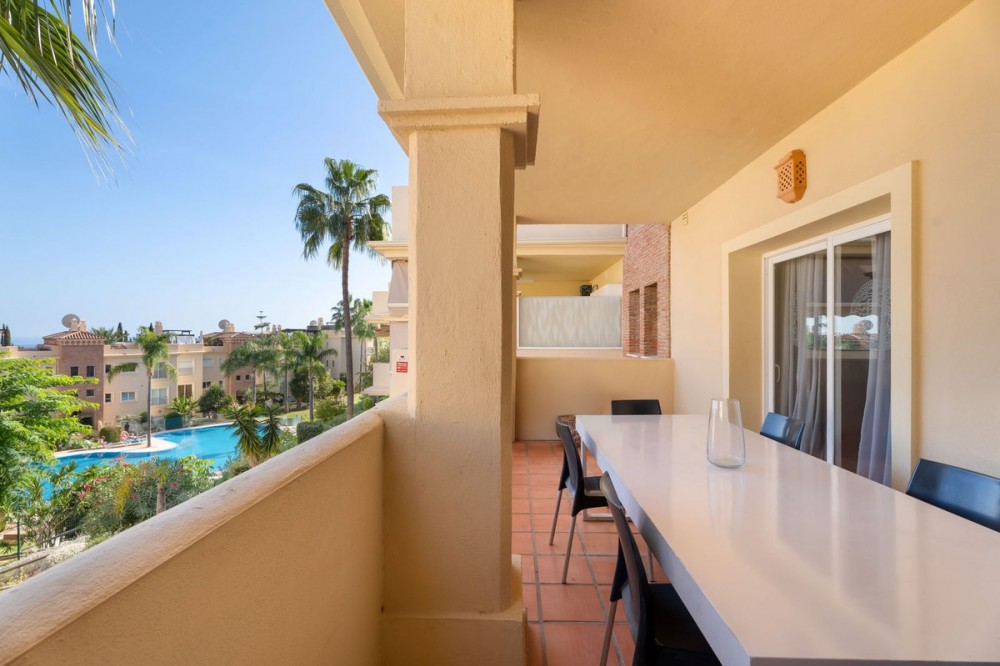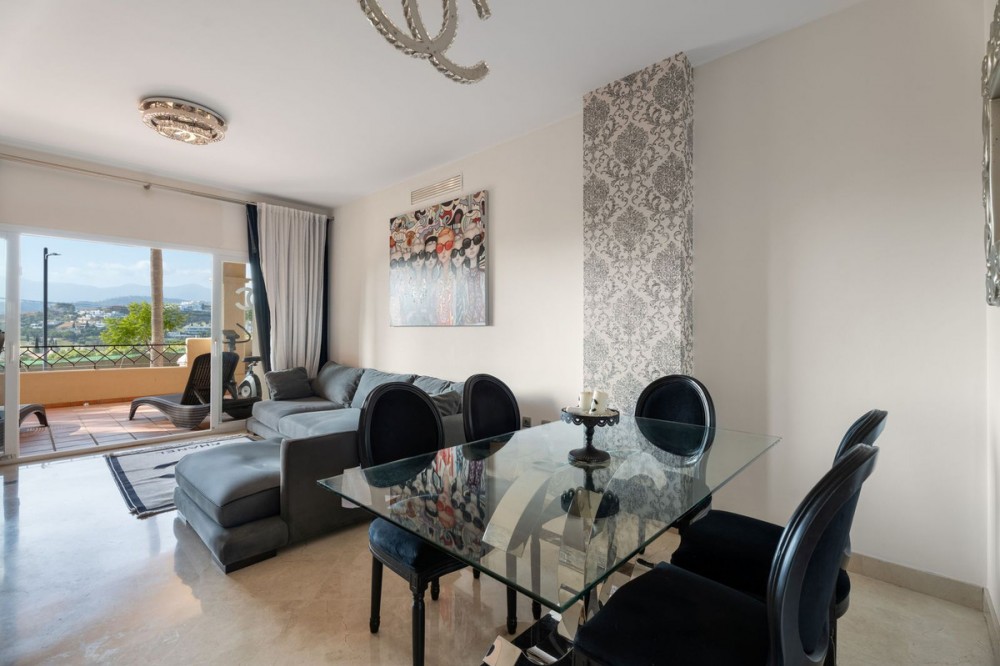 - 3 Bedroom Apartment - Bel Air, Estepona / Benahavis. Your new home awaits just a few meters from the luxurious Los Flamingos Golf Course and the 5-star Villa Padierna Hotel, this beautiful first-floor apartment is situated in an enclosed development with tropical gardens and a lovely swimming pool. The apartment offers 3 well-appointed bedrooms with built-in wardrobes, 2 fully fitted bathrooms, and a spacious, fully equipped kitchen. The cozy living room opens onto a large west-facing terrace, which can also be accessed from the master bedroom. The guest bedrooms both have access to an east-facing terrace overlooking the swimming pool, allowing the property to enjoy natural light throughout the day with its dual east and west orientation. With 3 top-range golf courses, the 5-star Villa Padierna Hotel, and shops just a 3-minute drive away, and the beach only 5 minutes by car, this apartment offers an ideal location. Puerto Banús and Estepona town are both approximately 12 minutes away.