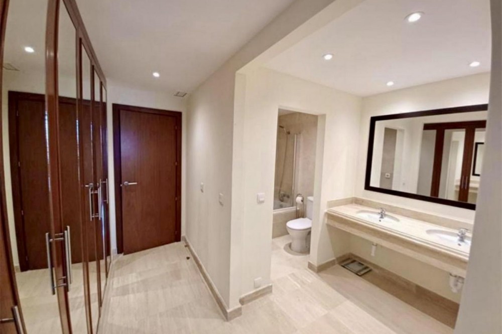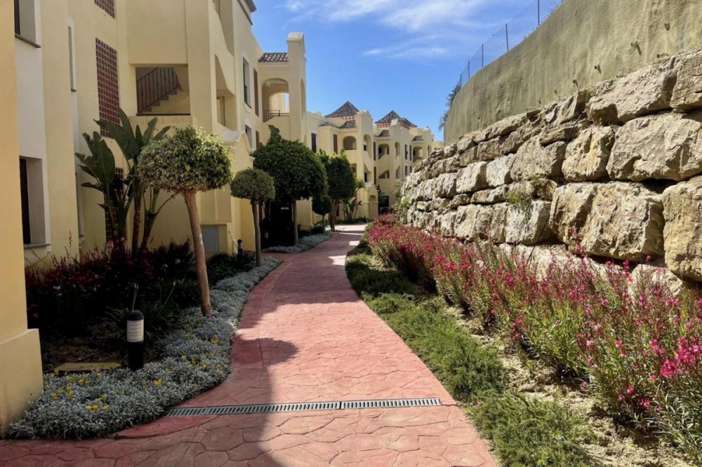 • This exceptional property is presented in a gated community, located in one of the most privileged areas of the Costa del Sol. This area is characterized by its tranquility and is one of the fastest-growing areas of Estepona, surrounded by prestigious golf courses and just five minutes from the beach, a private school, and a shopping area. The complex has two communal pools and a large green area. The property comprises two spacious double bedrooms, both with built-in wardrobes, two bathrooms, a fully equipped kitchen, a laundry room, a large living-dining room, and a spectacular 36-square-meter terrace with mountain views, offering great privacy for enjoying the outdoors year-round. It also features central air conditioning and mosquito nets on all windows. A parking space and a storage room are included. This property represents an excellent investment opportunity for rental or as a second home on the coast.