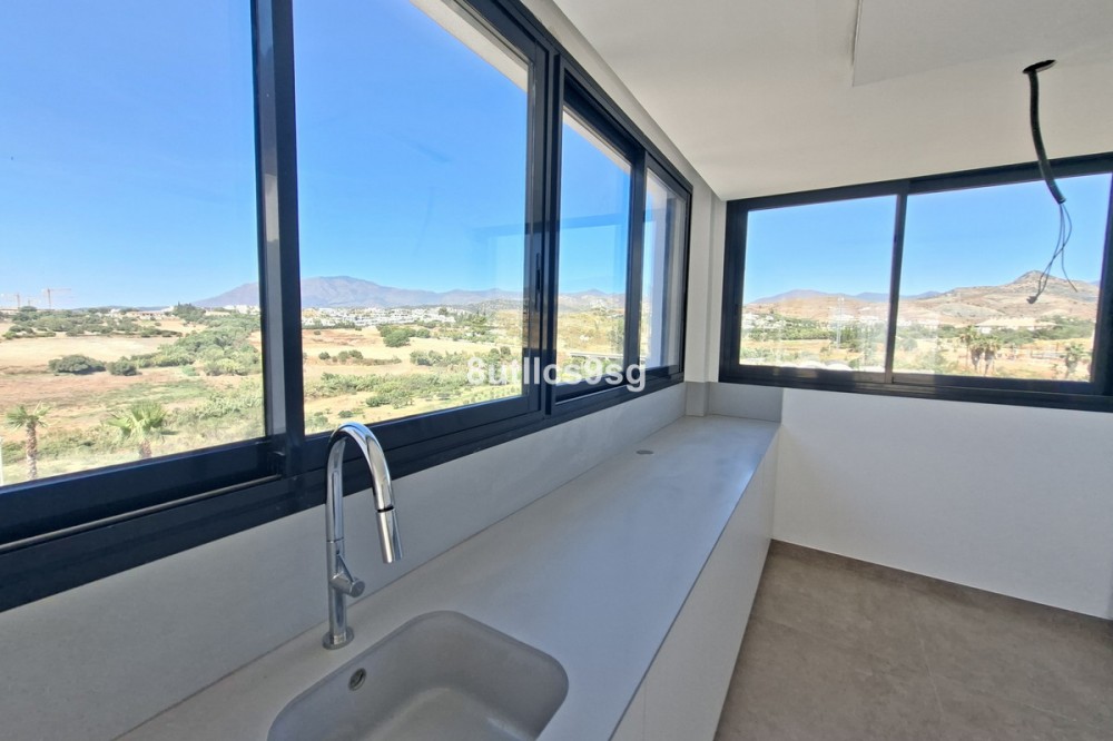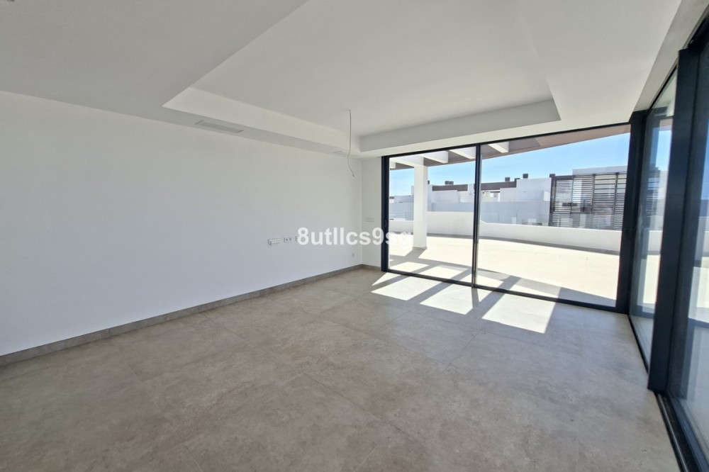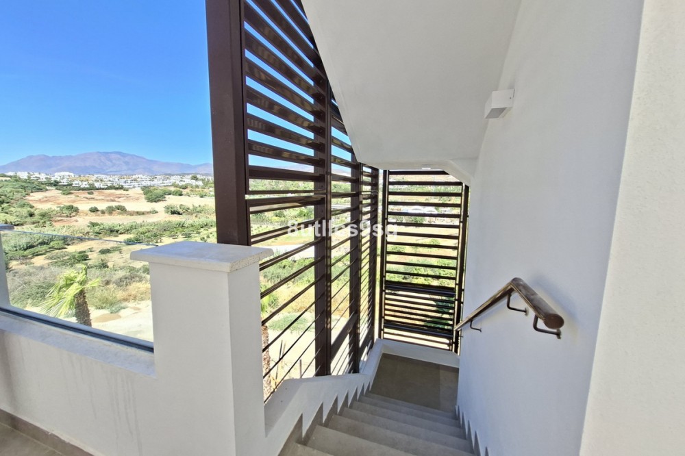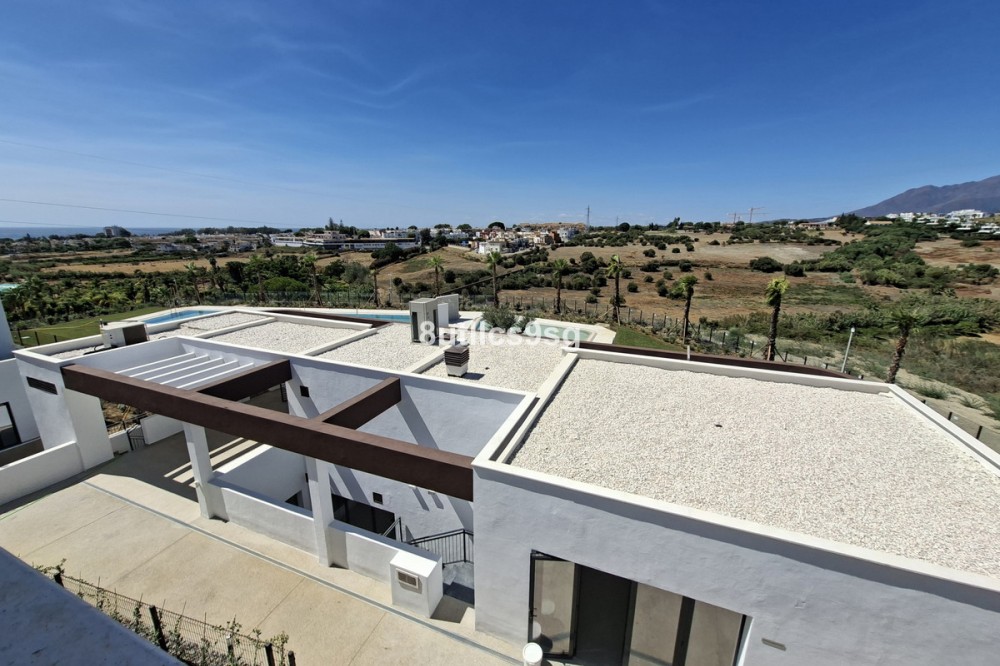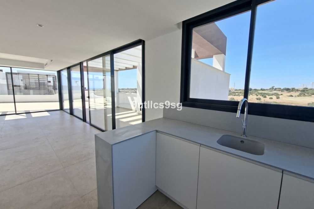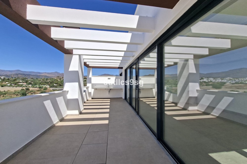 - Key ready to move in! Contemporary corner penthouse with stunning sea and mountain views, forms part of a totally brand-new modern complex. The property is laid out on a single floor, very well located within the complex to enjoy all four orientations and beautiful views day & night from its specious terrace that is overlooking the sea, mountains and the green areas around, very private terrace to enjoy your jacuzzi in a stunning outdoor area. It offers three bedrooms, one en suite, plus two secondary bedrooms that share a full bathroom, a guest toilet, a laundry room and an open- plan kitchen connected to the living room with the possibility of closing it off with glass doors. The home is spacious and bright, with open spaces and large windows designed to maximize natural light and take advantage of its fantastic views of the sea and mountains. Assigned to the property a big storage room and 3 underground parking places. The complex is made up of 60 homes with exceptional finishes.This residential complex, with clean, organic lines that blend perfectly into the natural surroundings, has communal areas where every last detail has been taken care of. There are 3 swimming pools, 2 padel courts , spa area, gym, changing rooms and even a coworking area and a communal kitchen. As the peace of mind of families is a priority, the urbanization has an integral security system and installation of video surveillance cameras, as well as a number plate recognition system at the access to the garages. The complex is located in the heart of the New Golden Mile on the Costa del Sol, in a quiet area and elevated with respect to the surrounding plots, which provides unbeatable views. Within minutes you can reach the beach or the surrounding commercial areas, which includes supermarkets, pharmacies, cafes, restaurants and many other services. The New Golden Mile is a 7 kilometre long avenue between Estepona and Puerto Banús (Marbella) and is one of the most exclusive areas on the Costa del Sol.