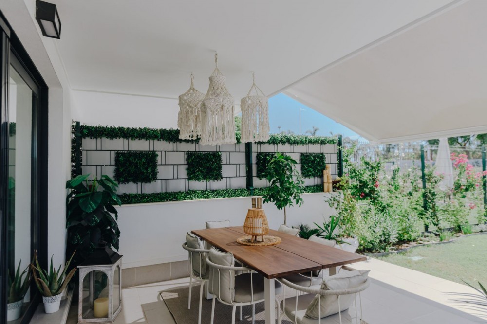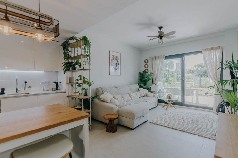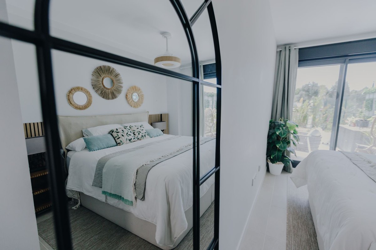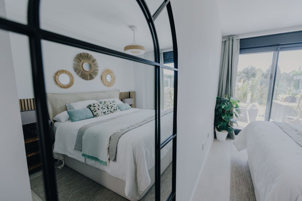 - Modern ground-floor 2-bedroom apartment with amazing garden located in the exclusive Aranya development in Selwo, Estepona. The property is newly delivered, south-facing and sold fully furnished, offering bright interiors and a contemporary design. The open-plan living area connects directly to a spacious private terrace and a large garden, creating the perfect setting for outdoor dining, relaxation and entertaining. The apartment includes an underground parking space and a storage room. Aranya is a secure gated community featuring a swimming pool, landscaped gardens, a gym, wellness area and co-working space. The location is excellent: just a 20-minute walk to the beach, 4 minutes by car to Sublim Beach Club, 8 minutes to Estepona town centre and 10 minutes to Marbella, with shops, services and restaurants nearby in the Las Joyas area. An ideal property for permanent living, holiday use or as a high-potential rental investment.