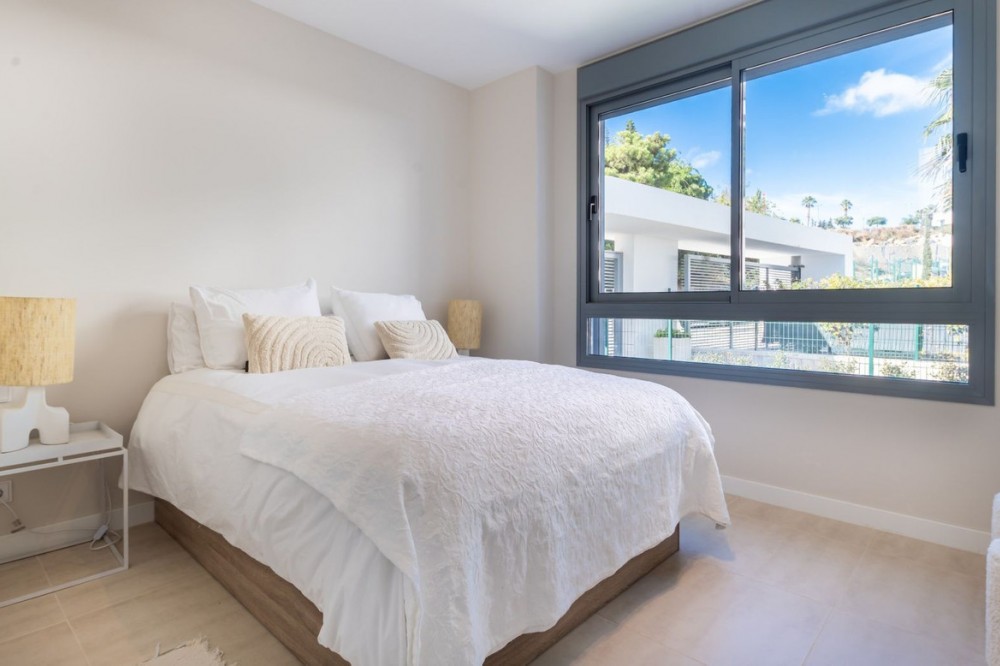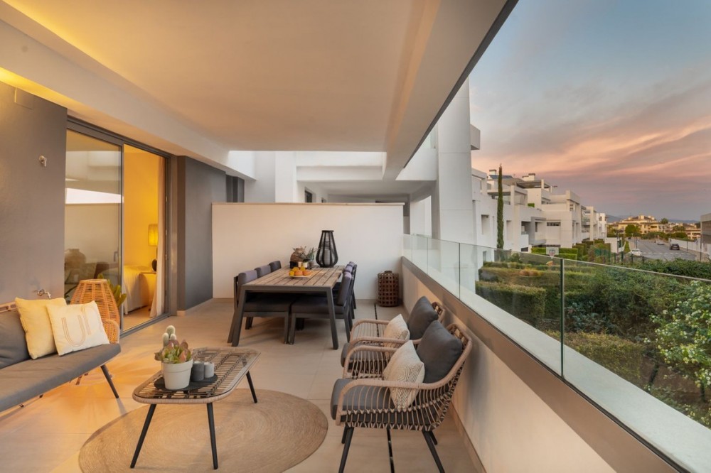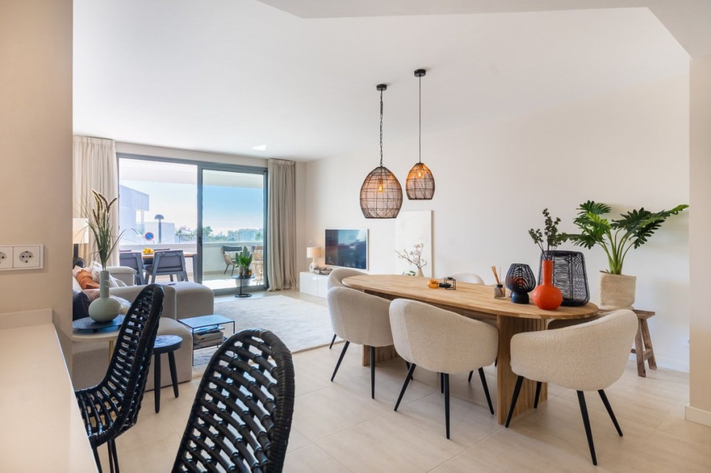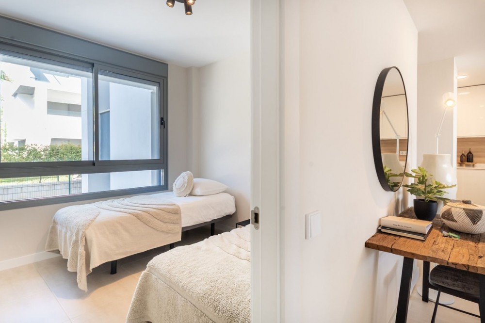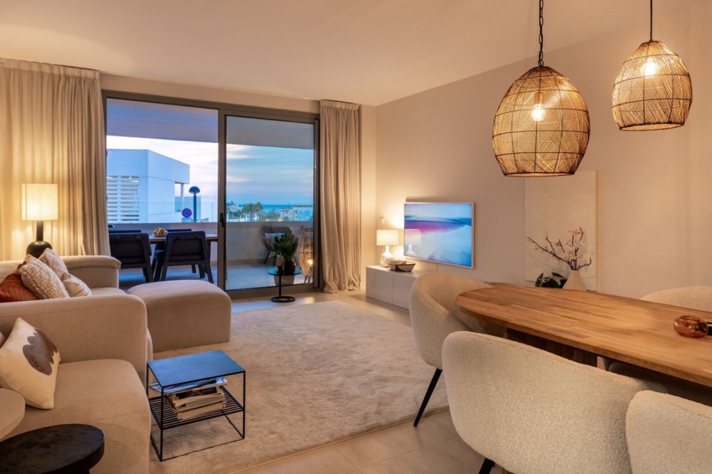 - Stylish 3-Bedroom Apartment with Sea Views – Vanian Gardens, Selwo (Estepona) Beautifully presented and fully furnished 3-bedroom, 2-bathroom apartment in the sought-after Vanian Gardens. This modern home offers bright open-plan living, a fully equipped kitchen, and an extra-large living room that opens onto a southwest-facing terrace with views of the Mediterranean. The master bedroom features an en-suite bathroom and fitted wardrobes, while two guest bedrooms share a contemporary walk-in shower. Includes private parking and a large storage room. Residents enjoy exceptional amenities: a heated pool, two additional pools, gym, spa with jacuzzis, Turkish & Finnish saunas, cinema, youth club, co-working space, children’s play areas, and beautifully landscaped gardens. Located just 800m from the beach and the Senda Litoral coastal path, with restaurants, chiringuitos, sports courts, a paddle club, and cafés nearby. Only 10 minutes from Estepona town and 20 minutes from Puerto Banús and Marbella. A ready-to-move-in home offering comfort, style, and an unbeatable lifestyle on the New Golden Mile.