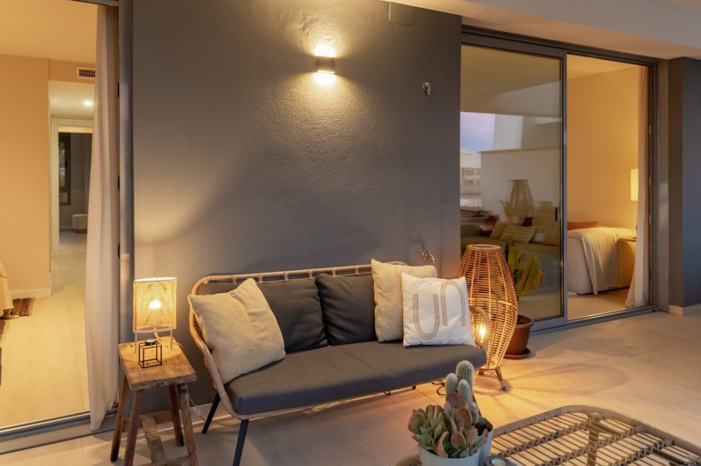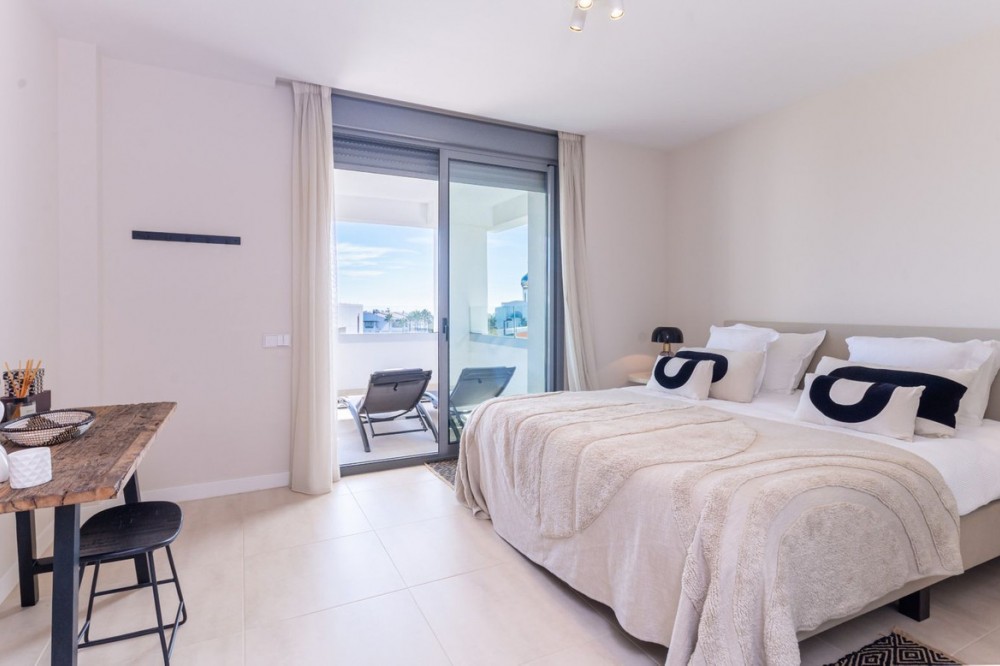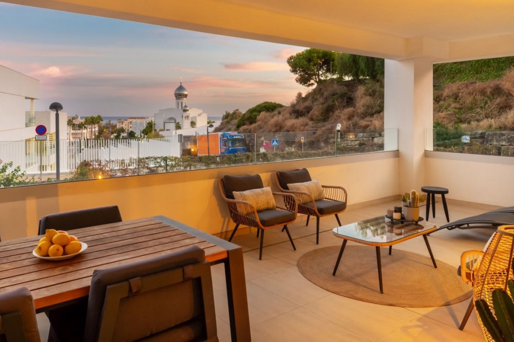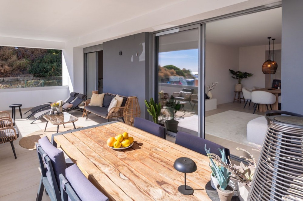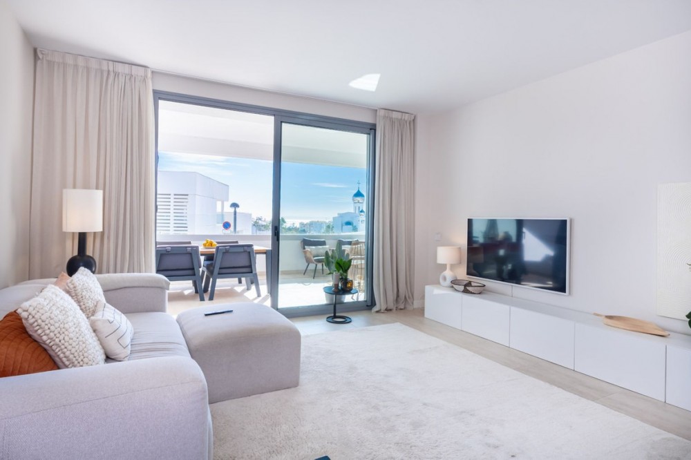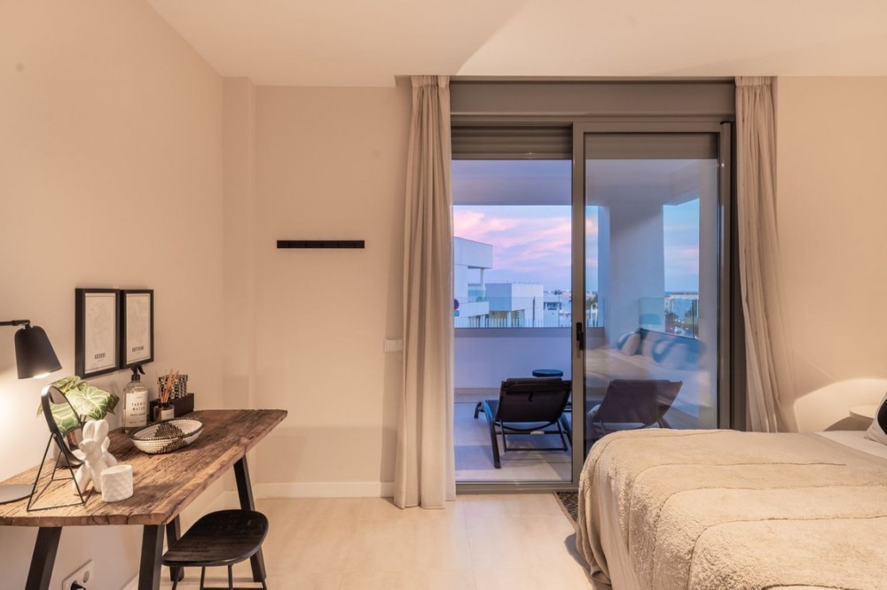 - Stylish 3-Bedroom Apartment with Sea Views – Vanian Gardens, Selwo (Estepona) Beautifully presented and fully furnished 3-bedroom, 2-bathroom apartment in the sought-after Vanian Gardens. This modern home offers bright open-plan living, a fully equipped kitchen, and an extra-large living room that opens onto a southwest-facing terrace with views of the Mediterranean. The master bedroom features an en-suite bathroom and fitted wardrobes, while two guest bedrooms share a contemporary walk-in shower. Includes private parking and a large storage room. Residents enjoy exceptional amenities: a heated pool, two additional pools, gym, spa with jacuzzis, Turkish & Finnish saunas, cinema, youth club, co-working space, children’s play areas, and beautifully landscaped gardens. Located just 800m from the beach and the Senda Litoral coastal path, with restaurants, chiringuitos, sports courts, a paddle club, and cafés nearby. Only 10 minutes from Estepona town and 20 minutes from Puerto Banús and Marbella. A ready-to-move-in home offering comfort, style, and an unbeatable lifestyle on the New Golden Mile.