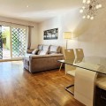 • This beautiful two-bedroom ground-floor apartment boasts a spacious outdoor area. It features a large covered terrace and a spacious private garden with a barbecue, pergola, and direct access to the swimming pool, paddle tennis court, and children's playground. The porch has a pergola, perfect for relaxing or gathering outdoors. The entire garden is paved and covered with high-quality artificial turf, making maintenance easy and ensuring it looks its best year-round. A barbecue area has also been created, equipped with custom-made furniture, a sink, water and electricity connections, and a second pergola that provides shade and comfort, creating an ideal space for meals and outdoor gatherings. Thanks to these improvements, the garden is a practical, comfortable, and modern space, perfect for enjoying time with friends and family. The apartment is located in the prestigious Selwo area, on Estepona's New Golden Mile, near Resina Golf, the new Padel Club, and the American School. Its south-facing orientation guarantees natural light throughout the day. This apartment features two bathrooms, one of which is en-suite with a dressing room and direct access to the terrace and garden; an extended kitchen with a laundry area and access to another terrace; and a bright living-dining room with access to the outdoor areas. It includes hot/cold air conditioning throughout, an underground parking space with direct elevator access to the apartment door, and additional outdoor parking for guests. The community, comprised of only 32 apartments, offers a large swimming pool, a children's playground, and a paddle tennis court. Its excellent location, less than 10 minutes from San Pedro Alcántara and Estepona, and very close to Marbella and Puerto Banús, makes this property a unique opportunity. Thanks to its wonderful outdoor spaces and the area's pleasant climate, it feels like home. A viewing is highly recommended.