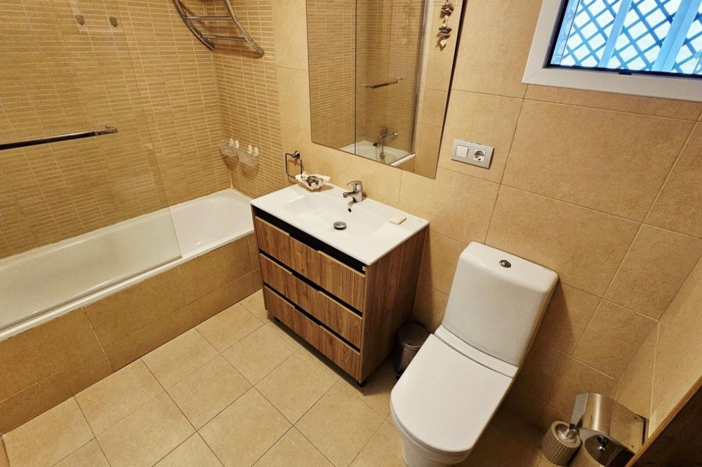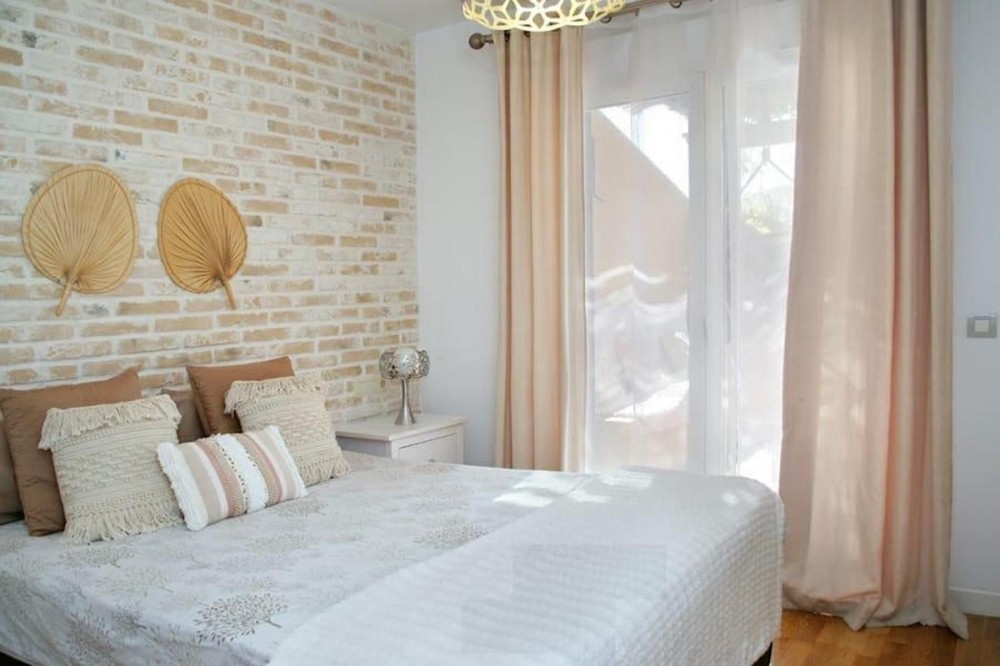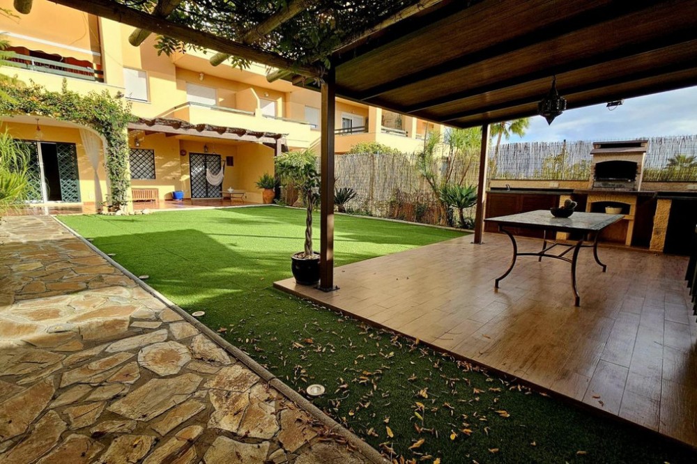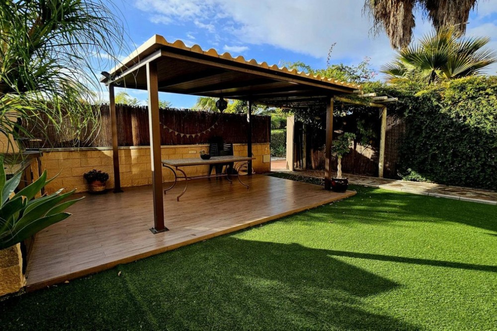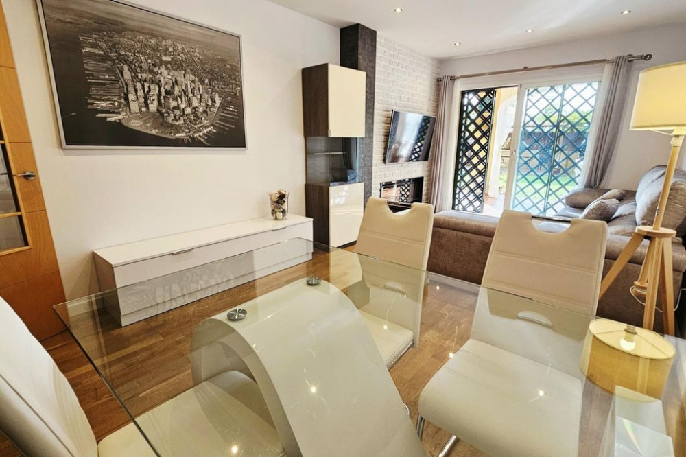 • This beautiful two-bedroom ground-floor apartment boasts a spacious outdoor area. It features a large covered terrace and a spacious private garden with a barbecue, pergola, and direct access to the swimming pool, paddle tennis court, and children's playground. The porch has a pergola, perfect for relaxing or gathering outdoors. The entire garden is paved and covered with high-quality artificial turf, making maintenance easy and ensuring it looks its best year-round. A barbecue area has also been created, equipped with custom-made furniture, a sink, water and electricity connections, and a second pergola that provides shade and comfort, creating an ideal space for meals and outdoor gatherings. Thanks to these improvements, the garden is a practical, comfortable, and modern space, perfect for enjoying time with friends and family. The apartment is located in the prestigious Selwo area, on Estepona's New Golden Mile, near Resina Golf, the new Padel Club, and the American School. Its south-facing orientation guarantees natural light throughout the day. This apartment features two bathrooms, one of which is en-suite with a dressing room and direct access to the terrace and garden; an extended kitchen with a laundry area and access to another terrace; and a bright living-dining room with access to the outdoor areas. It includes hot/cold air conditioning throughout, an underground parking space with direct elevator access to the apartment door, and additional outdoor parking for guests. The community, comprised of only 32 apartments, offers a large swimming pool, a children's playground, and a paddle tennis court. Its excellent location, less than 10 minutes from San Pedro Alcántara and Estepona, and very close to Marbella and Puerto Banús, makes this property a unique opportunity. Thanks to its wonderful outdoor spaces and the area's pleasant climate, it feels like home. A viewing is highly recommended.
