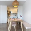 - This beautiful three-bedroom, two-bathroom apartment benefits from a southwest orientation, ensuring lovely afternoon light and pleasant sunsets. From the terrace, you can enjoy open views of the surrounding nature, with a partial sea view to the left. The terrace also features a private jacuzzi, perfect for unwinding at the end of the day. The interior has been designed in a modern Mediterranean style with high-quality materials. The open-plan kitchen, fully equipped (refrigerator, oven, ceramic hob, etc.), opens onto a welcoming living area that extends seamlessly to the outside. An underground parking space and a storage room are included. The residence offers perfectly maintained gardens and a large swimming pool. It also enjoys an ideal location: the beach is within walking distance (around 15 minutes), and the ports of Estepona and La Duquesa are just a few minutes away by car.