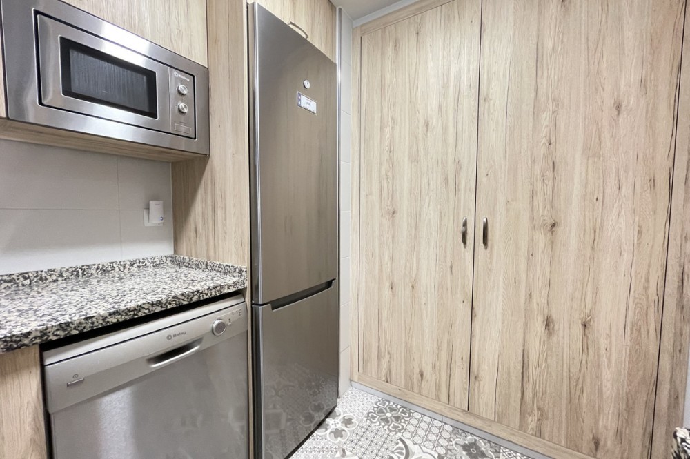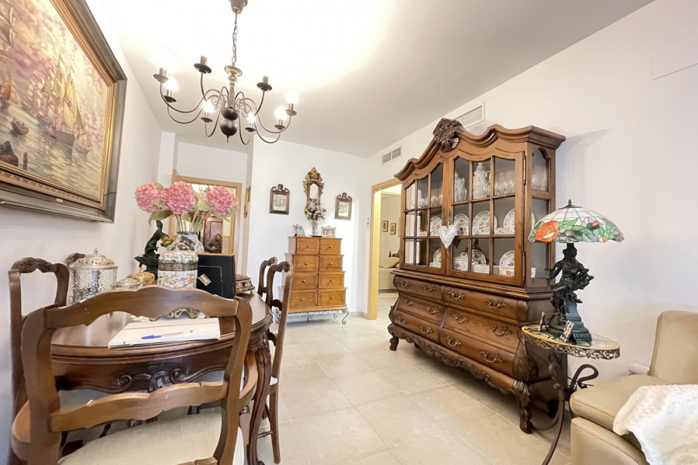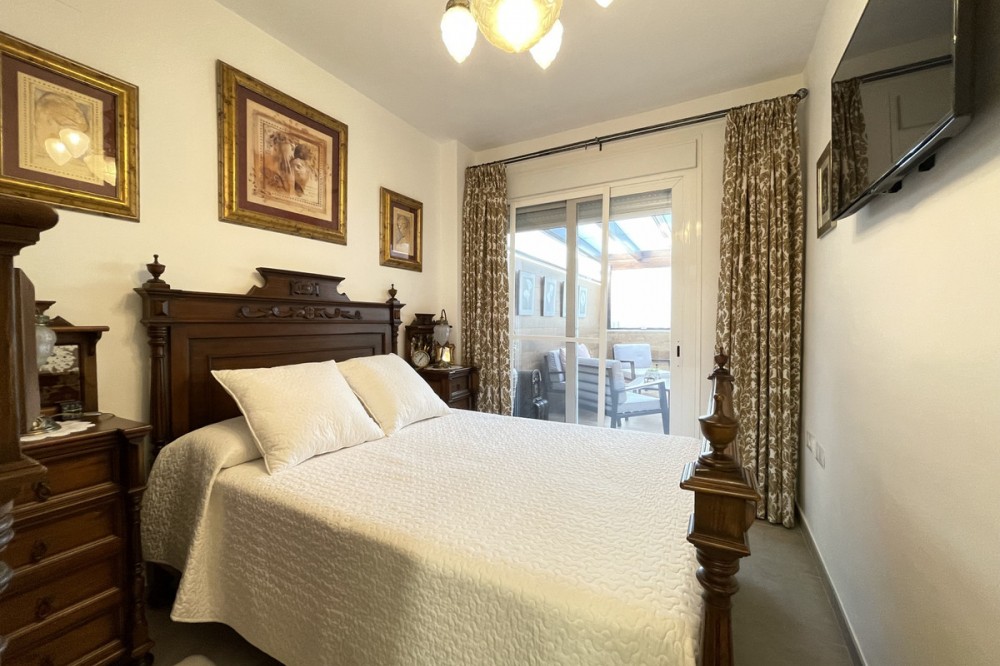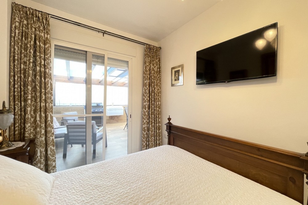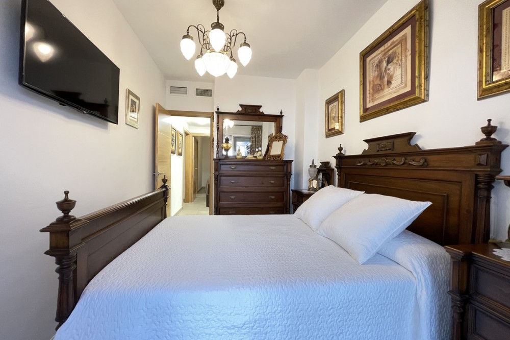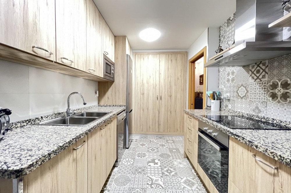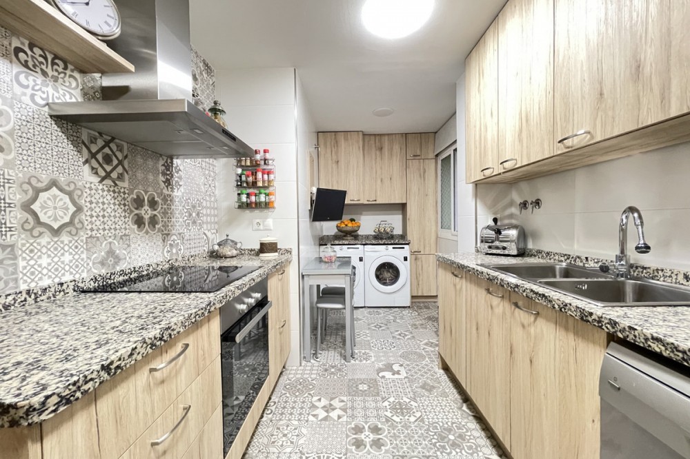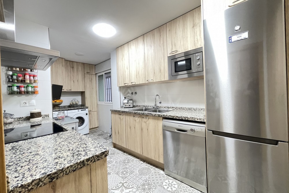 • This apartment in the centre of Estepona, Malaga, stands out for its excellent location and modern features. Located in a quiet area close to all amenities, the property is just a short walk from shops, schools, public transport and children's play areas, as well as the beach, offering a comfortable and relaxed urban living experience. The property, practically brand new after a complete refurbishment, has two bedrooms and one bathroom. Among its rooms, a spacious dressing room provides optimal storage space. The flat has air conditioning, tiled floors and fitted wardrobes, elements that provide comfort and functionality. The fully equipped kitchen includes a practical utility room. The main room connects to a large private terrace, ideal for social gatherings or enjoying the barbecue area. The residential complex offers communal areas such as a swimming pool and garden, allowing you to enjoy leisure time without leaving the premises. In addition, the property is located in a gated community with surveillance cameras, which increases security. The building has a lift, and the flat includes a private parking space and storage room. All this makes this property an ideal choice for both a primary residence and a second home, allowing you to enjoy peace and quiet without sacrificing proximity to all essential services.