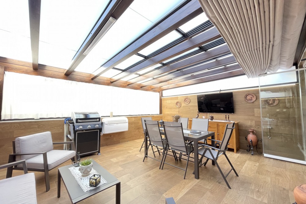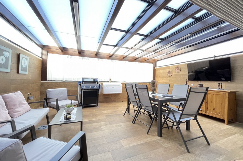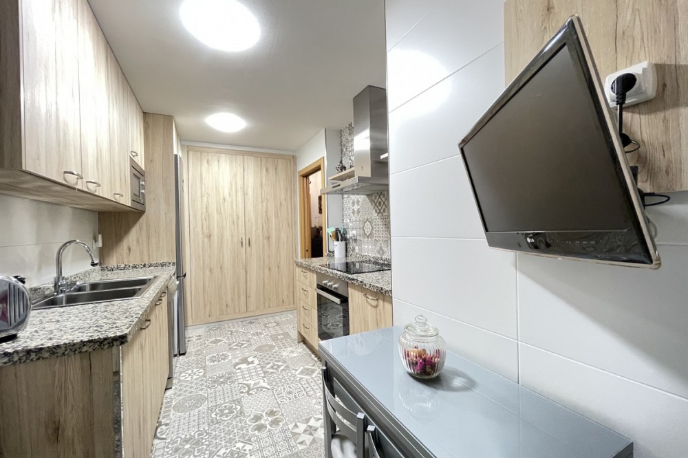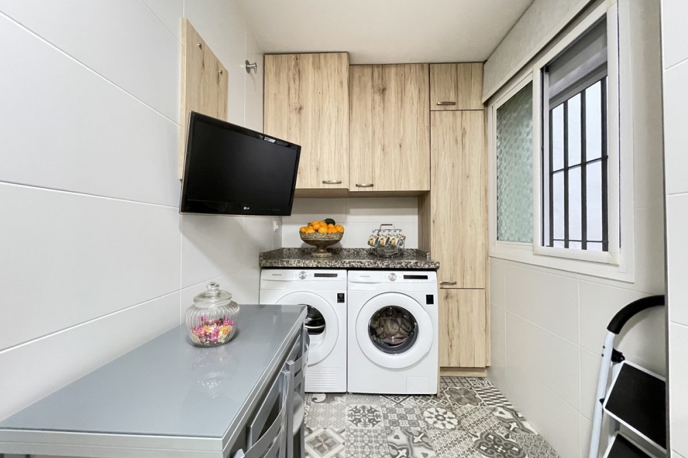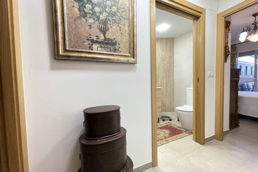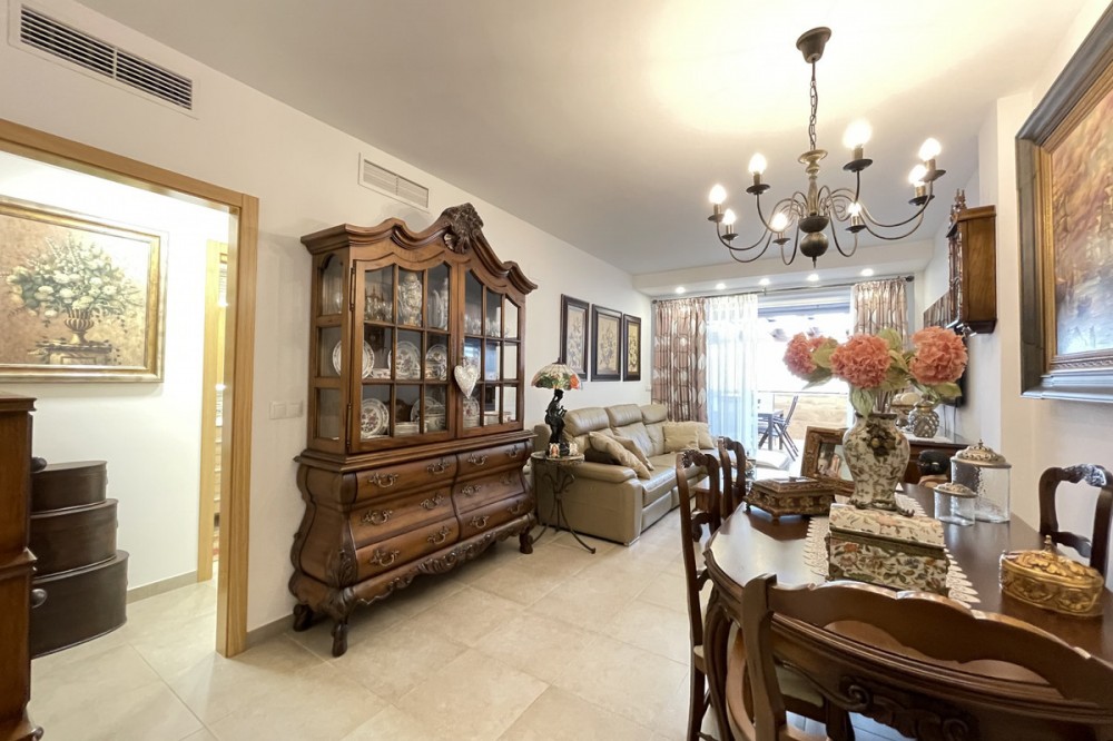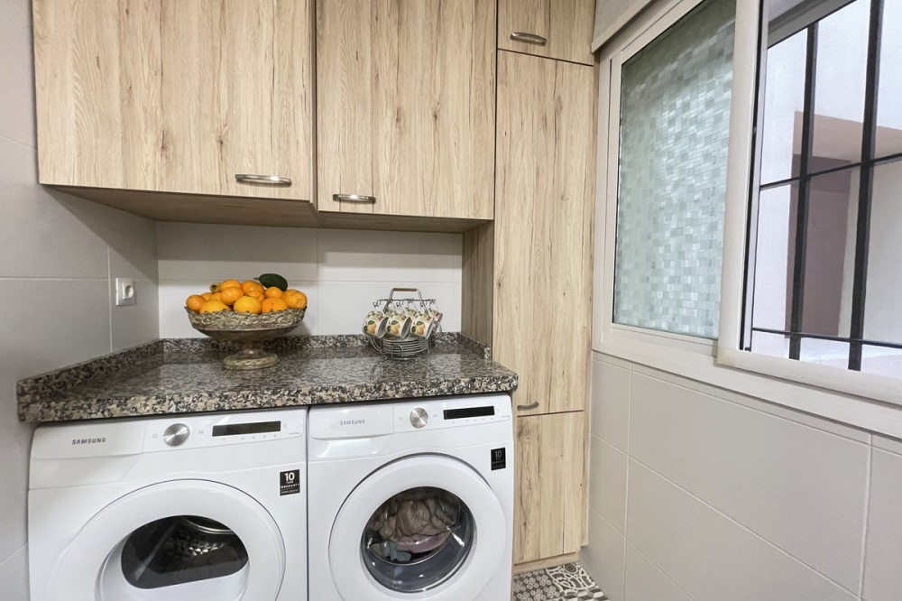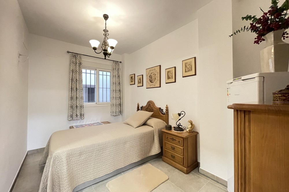 • This apartment in the centre of Estepona, Malaga, stands out for its excellent location and modern features. Located in a quiet area close to all amenities, the property is just a short walk from shops, schools, public transport and children's play areas, as well as the beach, offering a comfortable and relaxed urban living experience. The property, practically brand new after a complete refurbishment, has two bedrooms and one bathroom. Among its rooms, a spacious dressing room provides optimal storage space. The flat has air conditioning, tiled floors and fitted wardrobes, elements that provide comfort and functionality. The fully equipped kitchen includes a practical utility room. The main room connects to a large private terrace, ideal for social gatherings or enjoying the barbecue area. The residential complex offers communal areas such as a swimming pool and garden, allowing you to enjoy leisure time without leaving the premises. In addition, the property is located in a gated community with surveillance cameras, which increases security. The building has a lift, and the flat includes a private parking space and storage room. All this makes this property an ideal choice for both a primary residence and a second home, allowing you to enjoy peace and quiet without sacrificing proximity to all essential services.