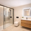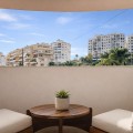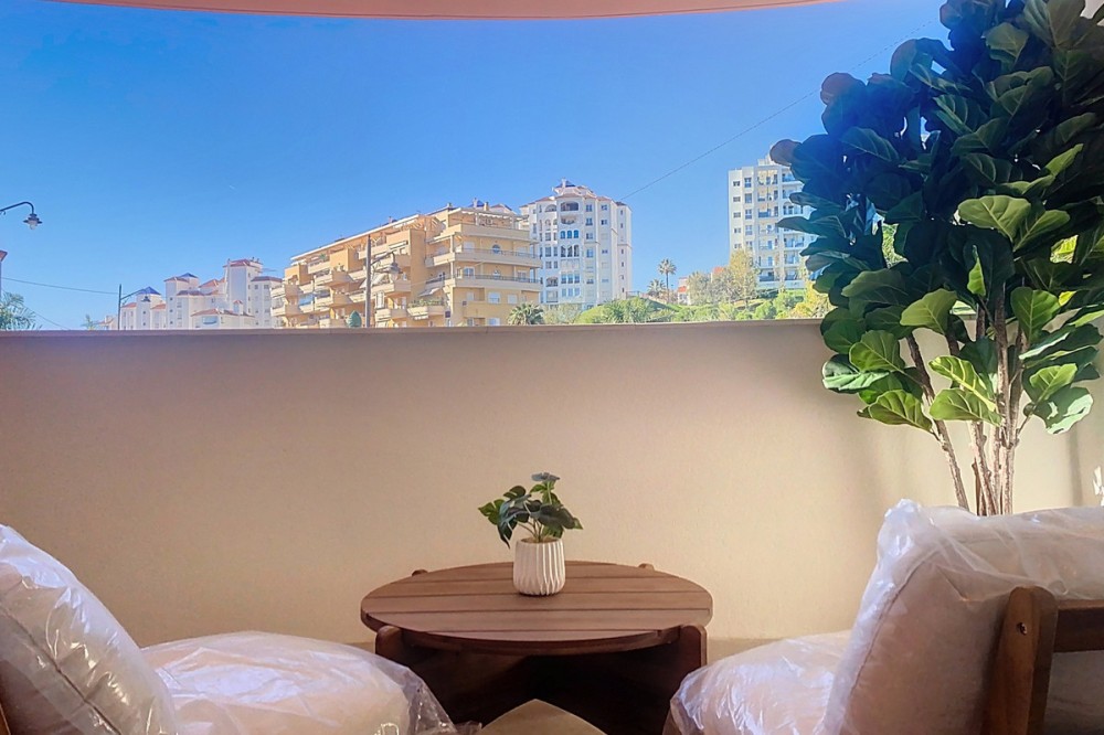 - Spectacular 120 m² apartment, recently renovated with high-quality materials and finishes. The property is delivered fully furnished and ready to move in, decorated with exclusive furniture and equipped with top-of-the-line appliances, offering a modern, functional, and comfortable style in one of Estepona’s most sought-after areas. Strategically located between the Marina and the historic center, this apartment combines proximity to the beach, restaurants, shops, schools, and all kinds of services, making it an ideal option both as a primary residence, a second home, or a high-demand investment. The interior layout includes a spacious and bright living room with direct access to a cozy private terrace of 7 m² with open views. The designer kitchen, fully equipped and with integrated laundry area, offers a practical and elegant space, connected to the terrace and open to the living room through a large peninsula. The apartment features three spacious bedrooms, all with new, lined, and illuminated built-in wardrobes, as well as ceiling fans and a powerful air conditioning system (8,000 frigories) that ensures maximum comfort throughout the year. The master bedroom has an en-suite bathroom with a modern shower and access to a balcony overlooking the interior of the complex, while the other two bedrooms—one currently used as a dressing room—share a second full bathroom. Both bathrooms stand out for their complete renovation with top-quality finishes, each featuring exterior windows that provide perfect ventilation. They include sliding glass shower screens designed to offer greater comfort and elegance. The property includes a parking space in the complex’s underground garage. Communal areas feature a swimming pool, well-maintained gardens, a children’s playground, and an elevator, offering all the amenities necessary to enjoy the Mediterranean lifestyle. This is a unique and exclusive property: a fully renovated and furnished apartment, with brand-new furniture, high efficiency, and in a privileged location, just a 1-minute walk from the marina and the beach, and 5 minutes from Estepona’s old town.