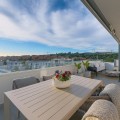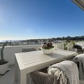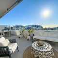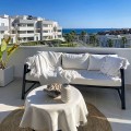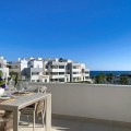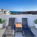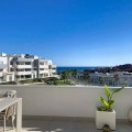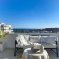 - This duplex penthouse is located in the Serenity Views Urbanization, in West Estepona, and stands out for its impressive sea views and spaciousness. The property, situated in a gated community, offers the tranquility of living close to the sea and the convenience of being near golf courses, shops, restaurants, and schools. The home features a spacious main living room, designed with an open-concept layout, which integrates perfectly with the private terrace, allowing you to enjoy natural light and direct panoramic sea views. The kitchen, fully equipped and modern in style, is connected to the living room and includes high-quality appliances, as well as a practical laundry area. In the sleeping area, there are two bedrooms with built-in wardrobes and two full bathrooms, one of them en suite. The bedrooms are designed to offer comfort and privacy, and the master bedroom also has a private bathroom and a private terrace with views of the countryside and mountains. An elegant staircase leads to the solarium, where the sense of spaciousness and the breathtaking sea views are truly impressive. Among the extras offered by this duplex penthouse are air conditioning, double glazing, reinforced door, as well as a garage and storage room included. The complex features a swimming pool and mature communal gardens, and elevator. The property is in excellent condition and has close access to all amenities, including the port, city center, and the beach.
