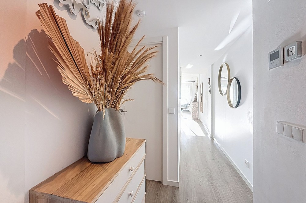 - This duplex penthouse is located in the Serenity Views Urbanization, in West Estepona, and stands out for its impressive sea views and spaciousness. The property, situated in a gated community, offers the tranquility of living close to the sea and the convenience of being near golf courses, shops, restaurants, and schools. The home features a spacious main living room, designed with an open-concept layout, which integrates perfectly with the private terrace, allowing you to enjoy natural light and direct panoramic sea views. The kitchen, fully equipped and modern in style, is connected to the living room and includes high-quality appliances, as well as a practical laundry area. In the sleeping area, there are two bedrooms with built-in wardrobes and two full bathrooms, one of them en suite. The bedrooms are designed to offer comfort and privacy, and the master bedroom also has a private bathroom and a private terrace with views of the countryside and mountains. An elegant staircase leads to the solarium, where the sense of spaciousness and the breathtaking sea views are truly impressive. Among the extras offered by this duplex penthouse are air conditioning, double glazing, reinforced door, as well as a garage and storage room included. The complex features a swimming pool and mature communal gardens, and elevator. The property is in excellent condition and has close access to all amenities, including the port, city center, and the beach.