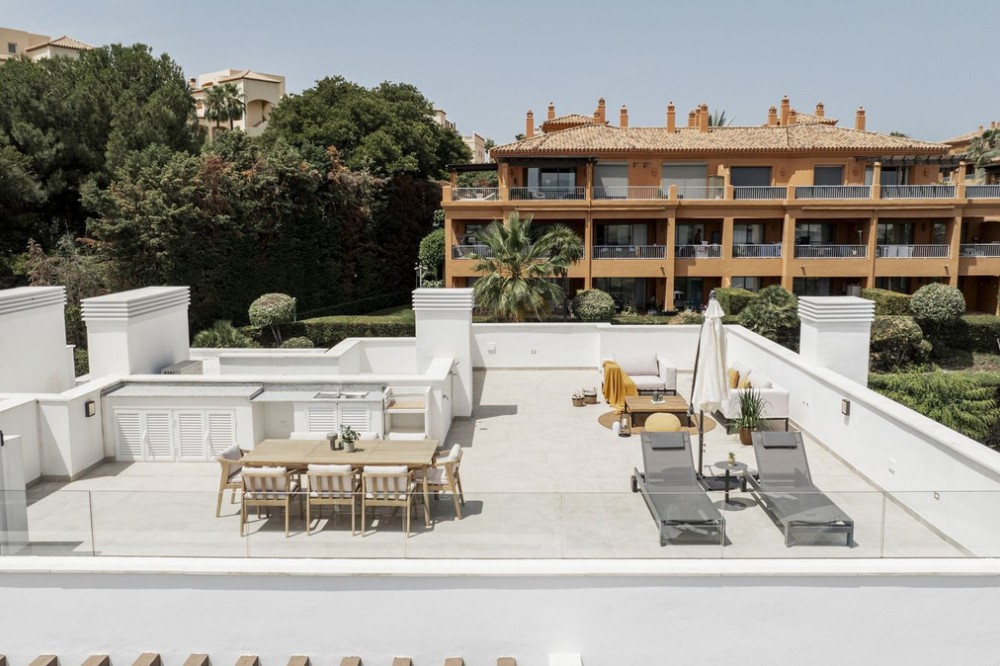 • Let op: Om u de best mogelijke service te kunnen bieden, verzoeken wij u uw e-mailadres en telefoonnummer achter te laten bij uw aanvraag. Dank u wel. Dit uitzonderlijke, gloednieuwe luxe penthouse, gelegen in het prestigieuze Atalaya Emotion-complex in Estepona, biedt drie royale slaapkamers en een fantastische buitenlevenstijl. Een privéterras en een ruim solarium bieden een adembenemend uitzicht over het omringende landschap en vormen de perfecte omgeving om te ontspannen en te genieten van het mediterrane klimaat. Het ruime terras is ideaal om buiten te dineren en gasten te ontvangen, terwijl het solarium op het dak een panoramisch uitzicht biedt en voldoende ruimte om te zonnebaden of in alle privacy te ontspannen. Het appartement is ontworpen met hoogwaardige materialen en afwerkingen van topkwaliteit en wordt omgeven door prachtig aangelegde gemeenschappelijke tuinen, zwembaden en eersteklas voorzieningen. Het biedt een serene maar levendige levensstijl op slechts enkele minuten van de Costa del Sol. Bewoners genieten van exclusieve toegang tot uitstekende gemeenschappelijke voorzieningen, waaronder een zwembad voor volwassenen, een kinderbad, jacuzzi's, een volledig uitgeruste fitnessruimte, een yogaruimte, een jeu de boulesbaan en een speciale speeltuin voor kinderen. De woning beschikt tevens over twee eigen parkeerplaatsen, wat extra gemak en veiligheid biedt. Dit penthouse is een ideale keuze voor gezinnen en veeleisende kopers die op zoek zijn naar comfort, elegantie en een resortachtige levensstijl. Ons makelaarskantoor geeft een nieuwe betekenis aan de vastgoedervaring met een focus op naadloze, klantgerichte service. Onze missie gaat veel verder dan alleen vastgoedtransacties — wij bieden een complete, hoogwaardige begeleiding bij het verkrijgen van een eigen woning, ontworpen om elke stap zo soepel en stressvrij mogelijk te laten verlopen. Met onze gespecialiseerde visumondersteuning vereenvoudigen we internationale verhuizingen door de juridische en administratieve complexiteiten voor u en uw gezin vakkundig af te handelen. Om uw start in Spanje nog gemakkelijker te maken, bieden we ook gratis NIE-ondersteuning, waardoor bureaucratische obstakels worden weggenomen en u waardevolle tijd bespaart. Wij begrijpen dat elke investering ertoe doet. Daarom werkt ons interne hypotheekadviessteam onvermoeibaar om de meest concurrerende voorwaarden te verkrijgen die zijn afgestemd op uw unieke financiële situatie. Zo wordt uw droom van een eigen woning haalbaarder dan ooit. Onze aanpak is helder en direct: u doet uitsluitend zaken met ons, zonder onnodige tussenpersonen. Dit garandeert een transparant en gestroomlijnd aankoopproces. Wij bieden u bovendien gratis juridisch advies om uw investering te beschermen en uw belangen gedurende het hele traject te waarborgen. U profiteert van exclusieve toegang tot topaanbiedingen, verzorgd door onze toegewijde makelaars die beschikken over diepgaande marktkennis en toegang tot kansen die niet openbaar worden aangeboden. Het gaat hier niet alleen om het vinden van een woning, maar om het creëren van een persoonlijke ervaring die aansluit bij uw levensstijl en langetermijnvisie. Wij verkopen niet zomaar vastgoed; wij helpen u met zorg, duidelijkheid en vertrouwen aan uw toekomst te bouwen. LAAT ONS U VERHUIZEN!