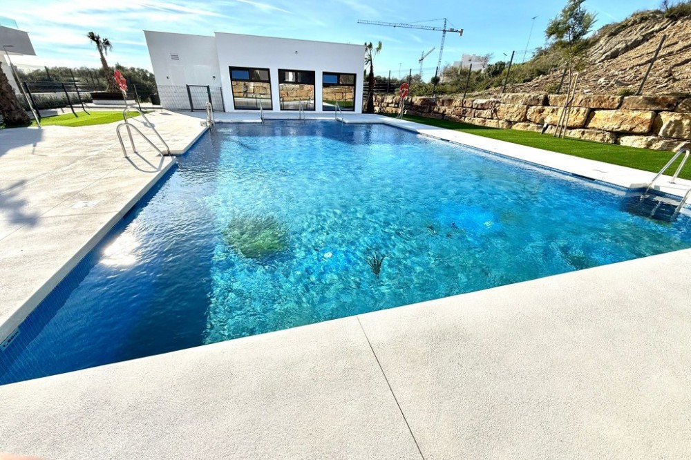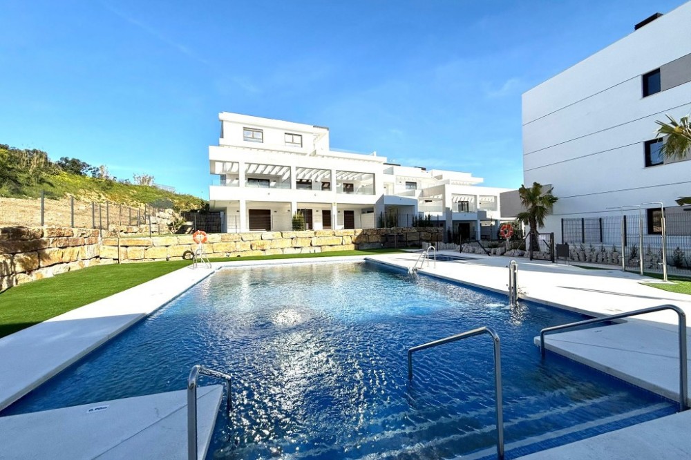 - Beautiful brand new modern middle floor apartment with 2 bedrooms and 2 bathrooms with a large terrace with spectacular open views. Located in West Estepona surrounded by array of restaurants, cafees, two supermarkets and amenities, only 5min drive to Estepona town. Set within a secure gated community with large pool and kid's pool, gym, and a large co-working area. Built to a high standard with open plan kitchen and living, dining area leading to a large terrace. Both bedrooms, one of them en-suite has access to a terrace. Hot and cold air-conditioning throughout. Undeground parking and storage room included in the price. Wonderful opportunity for permanent living, holiday use or investment for rentals. Community allows a short term rentals.