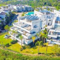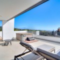 - Exceptional sought-after contemporary duplex penthouse for sale in Mirador de Estepona Hills, Estepona Apartment details * Spectacular, huge penthouse with 4 bedrooms which is very rare * Very modern, contemporary architecture * Top of the range appliances * Duplex distribution * South / South-East orientation * Spectacular panoramic 270º sea and mountain views, views over the entire urbanization * Very generous open plan kitchen, dining and living room with floor to ceiling windows * The kitchen is fully equipped with top brand appliances, there is a large associated utility room * Fitted wardrobes in all bedrooms * Air conditioning for cooling and heating * Private underground parking slot for 2 cars Complex details: * Superb new luxury village-complex just north of the centre of Estepona (walking distance via a dedicated path) * Gated, with 24h dedicated manned security + security cameras * Impressive tropical gardens, walkways with 2 swimming pools * Blue Duck cocktail bar and restaurant in the center of the urbanization near one of the pools 2600 sqm of sports zone, comprising a huge state-of-the-art gym of 1000 sqm, 5 padel tennis courts, 1 tennis court * Kids playground * Charging points for electric vehicles