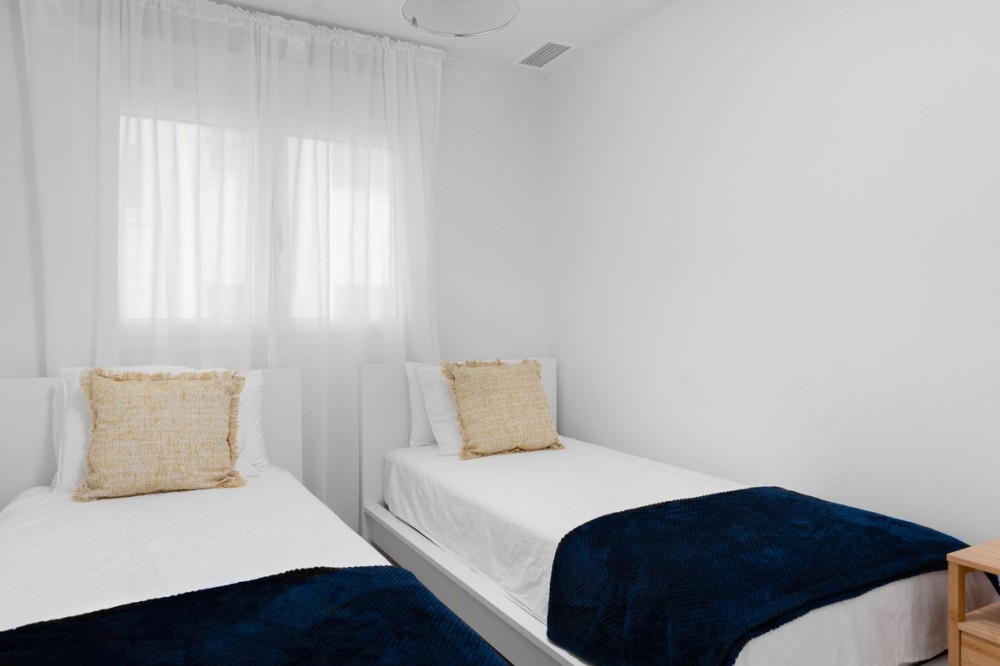 - Modern 2-Bedroom Apartment with Parking – Puerto Blanco, Estepona Bright and modern 2-bedroom, 2-bathroom apartment located in the contemporary development Residencial Puerto Blanco, Estepona. The property features an entrance hall, fully fitted kitchen, spacious living–dining area, two bedrooms, two bathrooms, a separate utility area, and access to a private terrace. The price includes a private underground parking space. Residents benefit from lift access, well-maintained communal areas, communal swimming pool and a residents’ social club. Ideally located close to the marina (just a 2 minute walk), beaches, and all amenities of Estepona town, making it perfect as a permanent home, holiday property, or investment. The apartment also holds a tourist licence in place for holiday rentals, offering excellent rental potential.