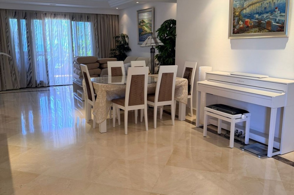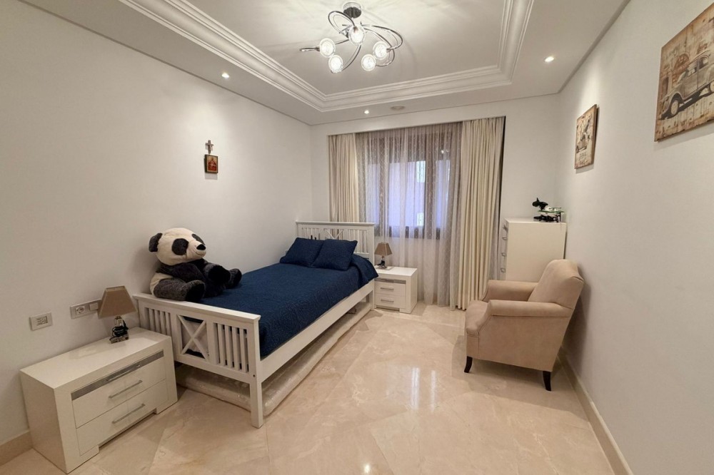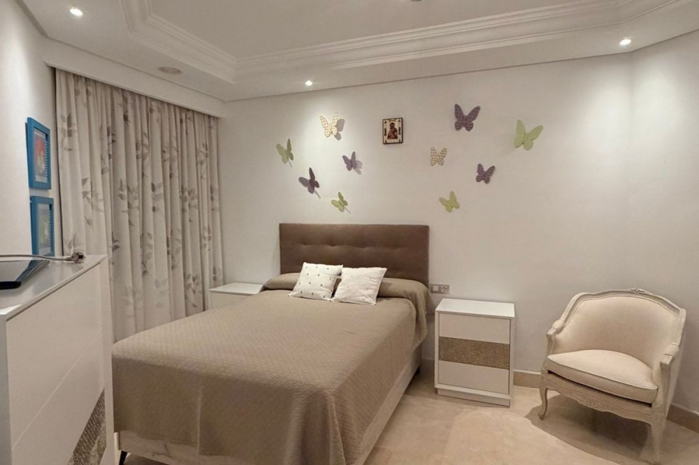 - Exclusief appartement te koop in Estepona, gelegen in een prestigieus luxe complex aan het strand, met directe toegang tot het strand en een uitzonderlijke levensstijl aan de Costa del Sol. De woning bevindt zich op de eerste verdieping en beschikt over 3 slaapkamers en 2 badkamers, met een goed doordachte indeling en veel natuurlijk licht. Twee van de slaapkamers bieden direct uitzicht op zee, wat een unieke verbinding met de Middellandse Zee creëert. Het appartement is hoogwaardig afgewerkt en beschikt onder andere over vloerverwarming, airconditioning, een alarmsysteem en rolluiken, wat comfort, efficiëntie en gemoedsrust garandeert. De woning maakt deel uit van een exclusief wooncomplex met 24-uursbeveiliging, conciërgeservice en eersteklas voorzieningen, waaronder een volledig uitgeruste fitnessruimte, sauna, buitenzwembad en prachtig aangelegde tuinen, wat zorgt voor een verfijnde en ontspannen omgeving. Dankzij de ligging direct aan het strand en de luxe voorzieningen biedt deze woning een uitstekende kans als hoofdverblijf, vakantiehuis of investering in een van de meest gewilde gebieden van Estepona.