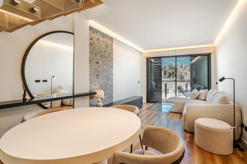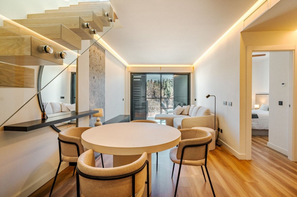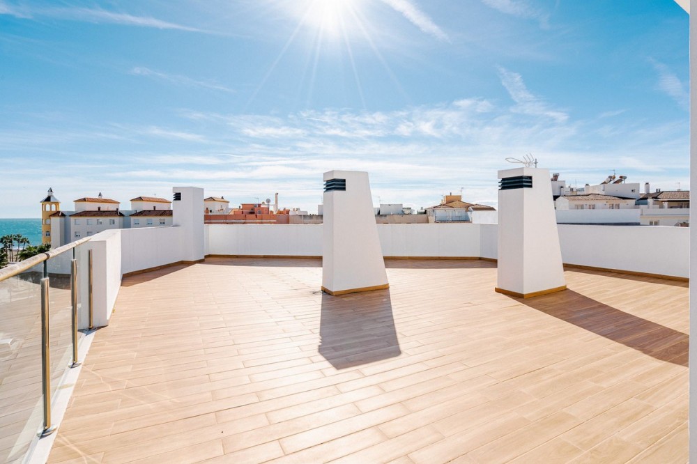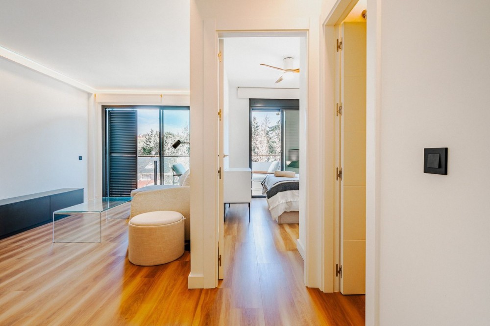 • Exclusief duplex penthouse in het hart van Estepona, tussen Calle Caridad en Avenida Andalucía, op slechts een paar meter van het strand, de boulevard en het restaurantgebied. Een toplocatie waar u kunt genieten van de authentieke mediterrane levensstijl met alle voorzieningen op loopafstand. De woning heeft een oppervlakte van circa 76 m² en is ingedeeld in een entreehal, een lichte woonkamer met een volledig uitgeruste open keuken, twee slaapkamers en een complete badkamer, waardoor een moderne, open en zeer uitnodigende ruimte ontstaat. De woonkamer biedt directe toegang tot het terras, waar u kunt genieten van een aangenaam zijdelings uitzicht op zee. Bovendien hebben zowel de woonkamer als de hoofdslaapkamer toegang tot de terrassen, wat zorgt voor veel natuurlijk licht en een naadloze verbinding tussen binnen- en buitenleven. Een van de grootste pluspunten van deze woning is het spectaculaire privésolarium van circa 90 m² op de bovenverdieping, bereikbaar via een binnentrappenhuis. Een unieke ruimte, ideaal voor een ontspanningshoek, een eethoek in de buitenlucht of om simpelweg het hele jaar door te genieten van de zon en het bevoorrechte klimaat van de Costa del Sol. Het pand is gelegen in een van de eerste slimme gebouwen in Estepona, uitgerust met domoticasystemen en hoogwaardige afwerkingen, ontworpen om comfort, technologie en efficiëntie te bieden. Een van de meest opvallende kenmerken van het gebouw zijn de gemeenschappelijke ruimtes, ontworpen volgens een zeer origineel architectonisch concept dat open en ontspannende omgevingen creëert. Dit geeft het gebouw een unieke identiteit en een sfeer die uitnodigt tot genieten en ontspannen, zonder de deur uit te hoeven. Het gebouw biedt bovendien uitstekende voorzieningen: Aangepast gemeenschappelijk zwembad Elegante panoramische glazen lift Parkeerplaats inbegrepen Privé-opslagruimte, zeer gewild in het stadscentrum Dit alles in een modern gebouw, perfect gelegen in het hart van Estepona, op slechts een paar minuten lopen van het strand, de boulevard en de oude binnenstad. Een object dat tegenwoordig moeilijk te vinden is in het centrum van Estepona, met een toplocatie, moderne architectuur, technologie en grote buitenruimtes. Woningen met deze kenmerken en een privésolarium van deze omvang komen zelden op de markt in het centrum van Estepona. Als u op zoek bent naar iets echt bijzonders in het centrum van Estepona, dan is deze woning zeker een bezoek waard.