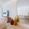 - Elegant and modern elevated ground-floor apartment with a large private terrace of 90 m² and partial sea views. Located in the sought-after area of Las Mesas, just a 10-minute walk from Estepona Marina and 20 minutes from the charming Old Town. Premium features and layout: 4 spacious bedrooms with fitted wardrobes, white lacquered finish and modular interior 2 full bathrooms + 1 guest toilet Designer sanitary ware, thermostatic taps, resin shower trays with glass screens Fully fitted kitchen with Siemens appliances: ceramic hob, oven, extractor hood, dishwasher, fridge and washing machine Contemporary countertops and stylish upper and lower cabinets Large-format porcelain tile flooring and matching white skirting boards White lacquered interior carpentry and reinforced main entrance door Comfort & Efficiency: Hot/cold air conditioning through ducts with thermostat control Aerothermal system for hot water production (ACS) Aluminium windows with thermal break and double glazing Motorised blinds with thermal insulation in living room and bedrooms Mechanical ventilation system for optimal indoor air quality LED lighting in kitchen, bathrooms and hallways Energy Efficiency A Exclusive communal areas: Adult and children's swimming pools Fully equipped gym Sauna Landscaped gardens and bicycle storage Lift with universal accessibility 2 Underground parking spaces and a large storage room included Perfect as a family home or investment in one of the most promising areas of Estepona.