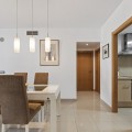 • Luxury two-bedroom apartment featuring a spacious living/dining room, fully equipped kitchen with separate utility area, and two bedrooms — one with an en-suite bathroom, the other with a family bathroom. Both bedrooms include built-in wardrobes. A highlight of the property is the large covered terrace with glass curtains, that leads out onto a wonderful private garden. This versatile space comfortably accommodates both seating and dining areas, making it a perfect second living space during the cooler months. This ground-floor apartment combines the generous dimensions of one of the larger units in the complex with the convenience of stair-free access, enhancing overall accessibility. Residents and guests can enjoy the beautiful Spanish climate in the impressive communal swimming pools, set within landscaped tropical gardens complete with sun-beds and a stylish beach bar. The resort offers 24-hour security, stunning communal areas, and a serviced *chiringuito* with a bar and restaurant at the heart of the development. Cortijo del Mar is within easy walking distance of local shops, restaurants, and the nearby clubhouse, which features an indoor pool, gym, tennis courts, golf course, and kids' club.