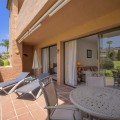 - Located within a very pleasant, secure residential community offering 24/7 security, this beautifully presented apartment combines comfort and resort-style amenities. Residents enjoy access to three swimming pools, tennis and paddle tennis courts, and beautifully maintained mature gardens. The apartment features two generously sized bedrooms, both with en-suite bathrooms and fitted wardrobes. The master bedroom opens onto a sunny, covered terrace that overlooks the communal gardens and pool—perfect for relaxing or entertaining. The second bedroom offers added charm with a Juliette terrace, allowing natural light and garden views to flood the space. Inside, the apartment is bright and inviting, with air conditioning throughout for year-round comfort. The spacious living area provides direct access to the terrace, garden, and pool area, enhancing the sense of indoor-outdoor living. An exterior awning offers shade on sunnier days, extending the use of the terrace. Additional features include communal parking, direct access to recreational facilities, and a sun-drenched layout that makes this apartment a true gem in one of the area’s most sought-after communities.