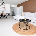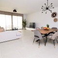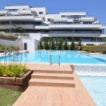 - Situated in Las Mesas, just outside the center of Estepona, this spacious luxury apartment offers peace and tranquility but is still close to the beach, port and city center. It consists of a large living/dining room, a fully equipped kitchen with adjacent utility room, the en suite master bedroom and two more bedrooms sharing a shower room. Additionally there is a covered front terrace with sea views and a small patio at the back. Underground parking space for one car and storage room. The complex with video surveillance is extremely well maintained, with tropical gardens and a beautiful pool. Heated indoor pool and gym (400 meter from the apartment). Air conditioning hot & cold, high speed internet. From the apartment it only takes 15 minutes to walk to Estepona port and the beach and 10 minutes to a large supermarket.