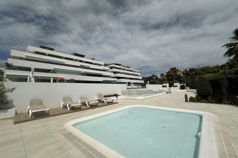 - Discover this magnificent apartment located in the prestigious urbanization of Campanario Hills, Estepona. Nestled within a gated community, this residence offers luxury and exclusivity with only 29 apartments and penthouses, all designed in a contemporary style with high-quality materials. Prime Location: The apartment boasts a privileged location near renowned golf courses in the New Golden Mile and close to the beach. It offers convenient access to the A7, allowing easy travel to Marbella, Estepona, Puerto Banús, and Sotogrande. Gibraltar Airport is approximately 40 minutes away by car, while Málaga is just a 60-minute drive. Interior Features: Upon entering, you are greeted by a spacious living room with an open kitchen and dining area. Floor-to-ceiling windows provide natural light and easy access to the terrace. The kitchen is equipped with state-of-the-art appliances and high-end finishes from the design firm Gunni and Trentino. Layout: The apartment features an ideal layout with three bedrooms and two bathrooms. The master bedroom includes an en-suite bathroom and direct access to the terrace. Hallways are fitted with ample built-in wardrobes, offering abundant and practical storage space. Outdoor Space: The expansive terrace is perfect for entertaining and relaxation, complete with a jacuzzi and a barbecue area for outdoor gatherings. For added convenience, the apartment is equipped with home automation systems, allowing easy management of lighting and other electronic devices. Community Amenities: Campanario Hills offers a wide range of amenities, including a large communal pool for adults and a separate children's pool. Residents can enjoy a fully equipped gym and a top-tier spa, featuring Turkish baths, high-pressure showers, and a relaxation area with infrared lamps. Experience the epitome of luxury living in this exclusive apartment in Campanario Hills, Estepona Este.
