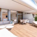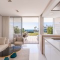 - This stunning modern apartament is located in Estepona's premier beachfront development, awarded with the first prize for ‘Best Architecture Multiple Property’ at the prestigious ‘European Property Awards’. The lovely ground floor features spacious master bedroom with bathroom on suite, guest bedroom with bathroom, both with an access to the private back terrace. The owner makes a lot of upgrades like: marble flooring from Tino or modern and elegant wardrobe in master suite. The bathrooms are finished by the prestigious Dornbracht brand. Kitchen is fully equipped with Gaggenau appliance with double fridge and freezer with ice maker, coffee maschine and warming drawer, ideal for preparing family meals in elegant space. The kitchen area is integrated with the living area. The floor-to-ceiling glass doors gives the bright and lead to the into a generous over 32 m2 terrace and private use garden. Here you can enjoy spectacular sea views. The apartment was designed with great attention to detail and the highest quality of finish, all rooms have LED lighting installed in the ceilings, in the living room there are additional LED floor strips with division into zones and dimmers in all rooms allowing to create a unique atmosphere in the evening. The apartment is located in block 4, it is an elevated ground floor, practically the level of the first floor, which guarantees the best sea views and privacy. The Edge offers their residents access to world- class amenities. The outdoor pool with panoramic views of the Mediterranean Sea and to Gibraltar, large indoor pool, spa with hammam, sauna, jacuzzi and steam room providing a complete wellness experience and make it a perfect place to enjoy the family holidays but also to make your investment profitable. A fully equipped gym and panel court ensure all fitness needs are covered. The development offers also modern design social club co-working space and 24h security. There is a parking space in underfloor garage and storage belongs to the apartament. The location of the complex is unbeatable, situated directly on the beachfront but also close to the restaurants and shops, only few minutes drive to the Marina of Estepona and the city center of Estepona. The distance to the airport is 1h by car Must be seen!