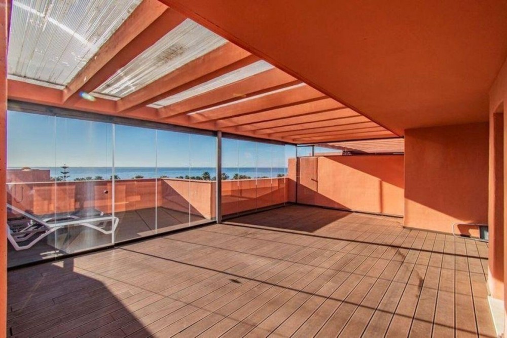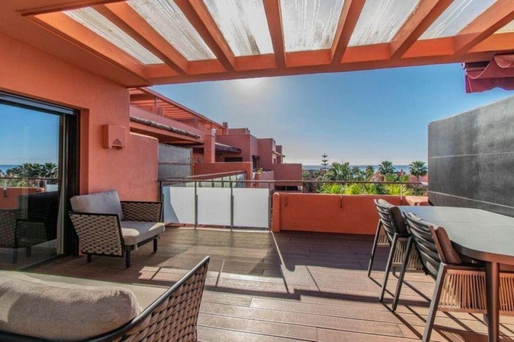 - A fully renovated penthouse blending elegant design with breathtaking sea views. Situated in the exclusive New Golden Mile area of Estepona, between Marbella and Estepona, it offers walking access to the beach and is just minutes away from shops, restaurants, Puerto Banús, and the region’s finest golf courses. This spacious duplex penthouse features three bright bedrooms, three modern bathrooms with underfloor heating, a stylish living room with an integrated kitchen, a terrace with sea views, and a large solarium on the upper floor. The property includes a convenient parking space and a storage room. Located in a prestigious gated community, the property offers 24-hour security, an outdoor pool, a heated indoor pool, a SPA, a sauna, and a fitness center. An ideal home for those who want to enjoy comfort, luxury, and magnificent views in one of the most exclusive areas on the Costa del Sol.