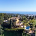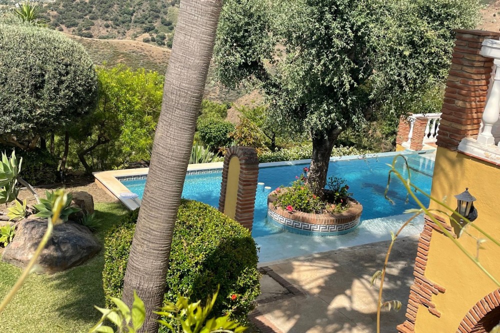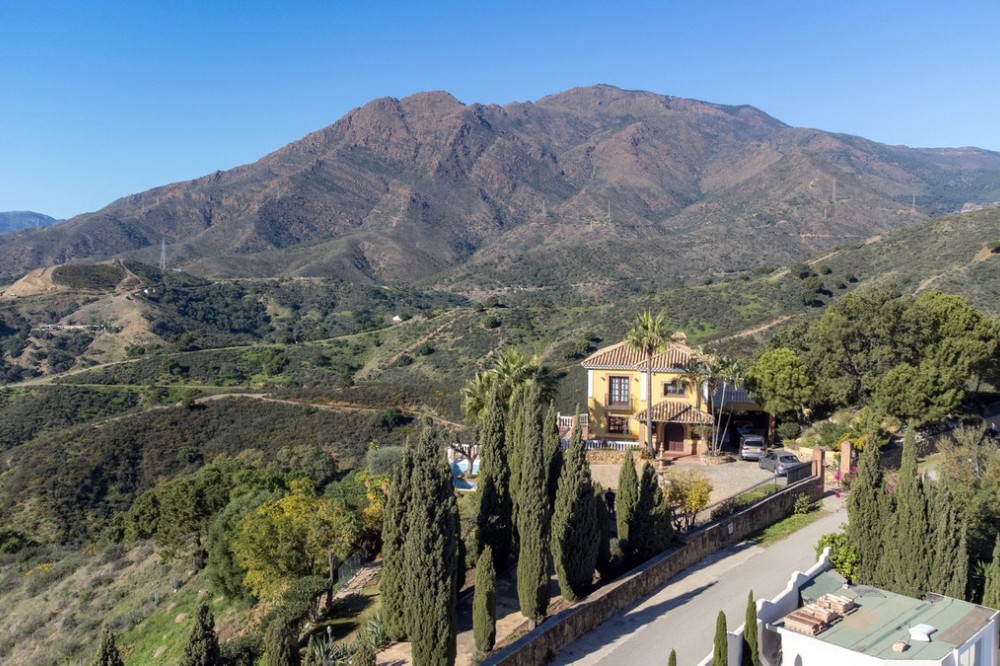 - Located in the tranquil hills behind the urban center of Estepona, this expansive villa offers exceptional potential and breathtaking views of the mountains, the Mediterranean Sea, Gibraltar, and even the African coastline. Set on a generously sized plot of just over 6,000 sqm, the property boasts terraces with fruit trees, a large landscaped garden, and ample outdoor space for relaxation and entertainment. Conveniently located, it’s only a 7-minute drive to Estepona's vibrant center—or for the adventurous, a one-hour hike. The property welcomes you through a charming courtyard with a fountain or a formal driveway. There is ample parking for three or more cars, along with a carport. The villa spans three floors, each with multiple terraces designed to maximize the stunning vistas. The entrance level features an elegant double-height hall with a staircase leading to the upper and lower floors. On this level, you’ll find a cozy sitting room with a working fireplace, a dining room, a fully equipped kitchen, and a guest cloakroom. A large terrace offers the perfect setting for hosting dinners while enjoying panoramic views. Upstairs, the spacious master suite includes a dressing room and a spa-style en-suite bathroom. Two additional bedrooms, one set up as a double room and the other as a single guest room, share a guest bathroom. All bedrooms are fitted with built-in wardrobes and enjoy picturesque views. The lower level offers remarkable versatility. It currently features two large double bedrooms, one smaller bedroom, two separate shower rooms, and an open-plan sitting room with access to a covered terrace and the pool area. A secondary kitchen, added to what was once a storage room, transforms this level into a self-contained three-bedroom apartment—ideal for guests or extended family. The villa is equipped with oil heating and working fireplaces, ensuring comfort throughout the year. The garden and pool area can be accessed from the lower level or via a staircase from the courtyard. The pool area is a true highlight, offering uninterrupted views of the mountains, the Mediterranean, Gibraltar, and Morocco. A dedicated BBQ area adds to its charm, making it the perfect spot for outdoor entertaining. Contact me today for a tour!
