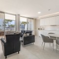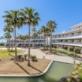 - Spectacular sea views, five minutes drive to Estepona and 15 minutes to Puerto Banus. Modern frontline beach development on the beach promenade, consisting of 68 flats. It has very well kept gardens, infinity pool, conference and meeting room, gymnasium and spa area with indoor heated pool, jacuzzi, hamman and sauna. This spectacular and luminous flat where you can enjoy the best views, has two bedrooms, 2 bathrooms with Dombracht finishes and 2 terraces, the main one with views to the garden and the sea, as well as a spacious open plan living room-kitchen with prestigious Gaggenau appliances, garage, storage room and 24h security. This luxury flat is perfect given its privileged location and the high end services it offers to become your new home. Come and see it.