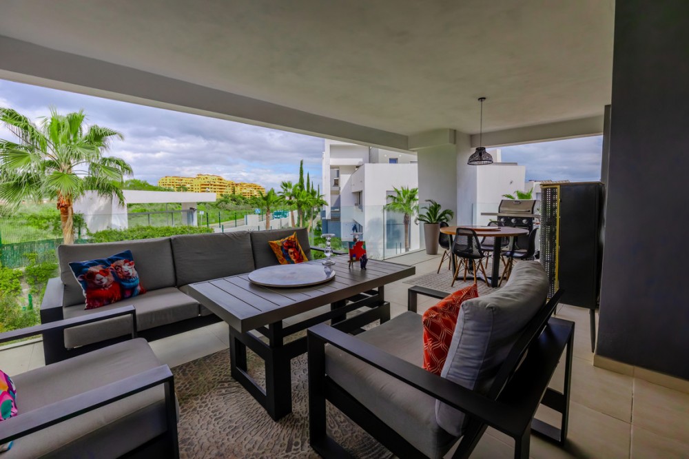 - Located in Vanian Gardens, this fully furnished two-bedroom apartment offers a perfect blend of comfort, privacy, and modern living. The master bedroom features an en-suite bathroom, while the second bedroom has access to a separate bathroom. The fully equipped kitchen and stylish interiors ensure a move-in-ready experience. One of the property’s highlights is the 18 sqm private terrace, offering breathtaking mountain views with complete privacy—no neighbors overlooking! The exclusive gated community provides a range of luxury amenities, including multiple swimming pools, a spa, a gym, coworking spaces, lush gardens, and tranquil fountains. Families will appreciate the proximity to Atlas School, while other nearby conveniences include a church, beautiful beaches (just 4 minutes away by car), Estepona (10 minutes), and San Pedro (10 minutes). With its prime location, modern comforts, and outstanding amenities, this apartment is a perfect retreat for families, professionals, or investors looking for a stylish and hassle-free home on the Costa del Sol