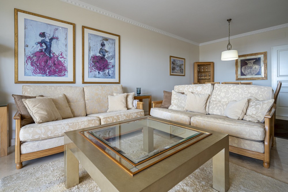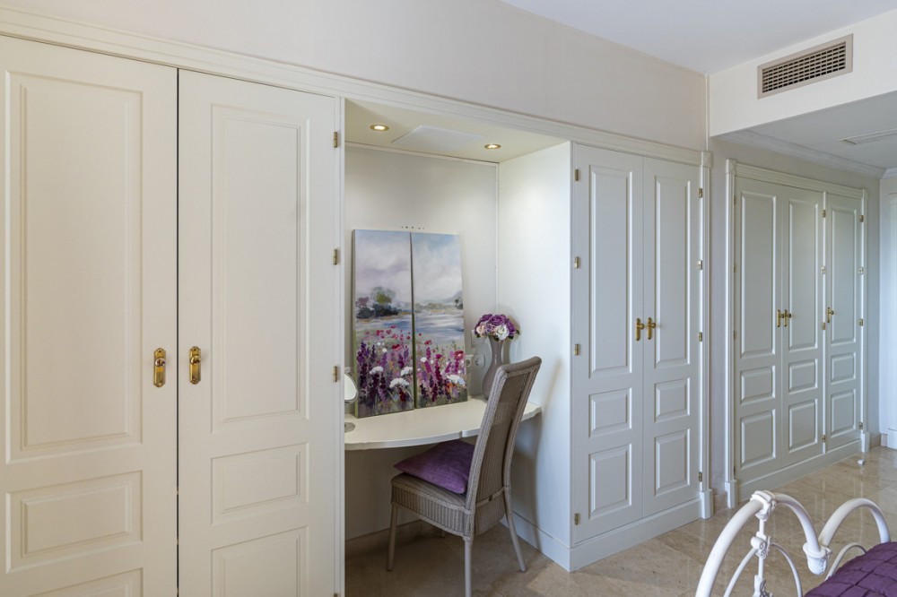 - Located in the sought-after Paraiso Barronal area, this stylish 2-bedroom, 2-bathroom apartment offers modern comfort in a serene setting. Spanning 134 m², it features a 24 m² enclosed terrace with a summer kitchen, wine cooler, and additional refrigerator, perfect for year-round relaxation and entertaining. Fully furnished and equipped with high-end Siemens appliances, a Bosch washing machine and dryer, and ducted air conditioning, this home ensures both elegance and convenience. One of the bathrooms has been recently renovated, adding a contemporary touch. Set within a gated community with a swimming pool and landscaped gardens, the apartment also includes two underground parking spaces and a 6 m² storage room. With breathtaking sea and La Concha mountain views, it is ideally located near shops, restaurants, and top golf courses. A fantastic opportunity for those seeking a refined home in Estepona. Contact us today for more details.