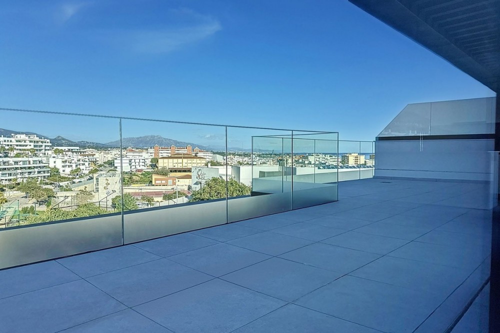 - Discover this magnificent newly built apartment, located in the prestigious Las Mesas area of Estepona. Designed to combine comfort, modernity, and a privileged lifestyle, this property is ideal for those looking to enjoy the best of Estepona and the Costa del Sol. The apartment features 3 bedrooms and 2 bathrooms (one of them en suite), with modern, high-quality finishes. Its open-concept kitchen flows perfectly into the spacious living-dining room, creating a bright and functional space with direct access to the terrace. One of the highlights is the impressive 58 m² private solarium with panoramic views—perfect for relaxing, entertaining guests, or simply enjoying the wonderful Mediterranean climate. The property includes a storage room and a parking space. The residential complex offers inviting communal areas, including a fully equipped gym, well-maintained gardens, and a community pool, providing the perfect setting to enjoy with family and friends. Located in a privileged area with easy access to major roads, this apartment lets you take full advantage of everything the Costa del Sol has to offer. Marbella and Puerto Banús—renowned for their glamour and leisure offerings—are less than 20 minutes away by car, as are top golf courses and shopping centers. The beach, Estepona’s town center, and its charming marina are also just minutes away.