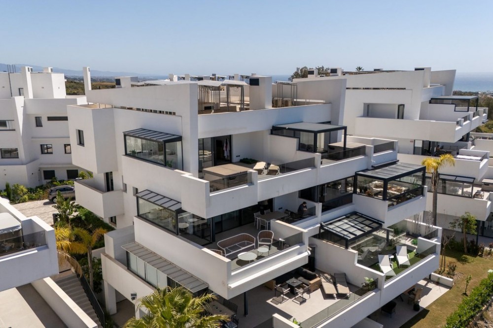 - Incredible 4 Bedroom 3.5 Bath Duplex Penthouse in the sought after development of Mirador de Estepona Hills. Mirador de Estepona Hills is an exclusive residential development situated in Estepona, Costa del Sol, offering a harmonious blend of luxury living and natural beauty. Nestled in the Sierra Bermeja mountains, the development provides panoramic views of the Mediterranean Sea and the surrounding mountains, creating a serene and private environment. Approximately 700 meters north of Estepona town center, ensuring easy access to local amenities while maintaining a tranquil setting. Amenities and Features:- Pools: A 1,000 m² infinity pool offering a beach effect, providing a luxurious space for relaxation. Large Second Pool on lower level. Sports Facilities: Five paddle courts, tennis courts, and a 4,500 m² sports club with a 1,000 m² indoor gym cater to various fitness preferences. Wellness and Leisure: A private hiking path in the lush green mountains of Estepona, a pool bar, and a restaurant enhance the lifestyle experience. Security and Services: 24-hour security, concierge services, and direct access to Estepona city center ensure convenience and peace of mind for residents. The property itself is set on 2 levels. The first level consists of a large open plan lounge and kitchen area (With utility room) along with a w/c. At the rear of the first floor you have a good sized double bedroom with en-suite bathroom, along with a cosy private balcony. Leading off the lounge you have a large terrace with great sea and mountain views. There is also a versatile glass room with folding glass doors accessed from the terrace which is ideal for storing outside furniture or extra room for entertaining. On the second level you have the master suite with en-suite bathroom. Sliding doors take you onto a private terrace, again with spectacular sea and mountain views. There is also a new hot tub on this terrace and an additional glass room with fitted kitchen all with new appliances, perfect for additional entertaining space. There are then an additional 2 double bedrooms which share another bathroom. All bedrooms have fully fitted wardrobes. The property also comes with 2 underground parking spaces and good size storage room. The property is sold with all furniture, fixtures and fittings.