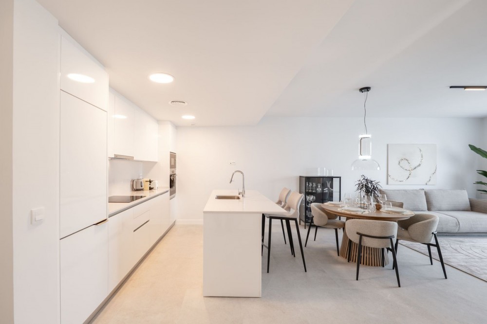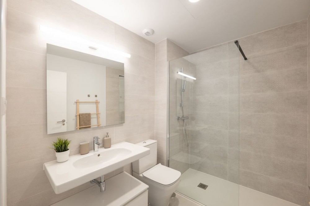 - READY TO MOVE IN – BRAND NEW – RESALE Not from developer – direct sale! Modern 2-Bedroom Apartment in a New Residential Complex in Estepona Bright and spacious apartment located on the first floor of a newly built residential complex, just minutes from the beach, town center, and marina. Layout and features: - Open-plan living and dining area with integrated kitchen - Master bedroom with en-suite bathroom - Second bedroom and a second full bathroom - Cozy terrace perfect for outdoor relaxation Included in the price: - Underground parking space - Private storage room (trastero) Complex amenities: - Swimming pool and landscaped gardens - Fully equipped gym - Modern construction and high energy efficiency Perfect as a permanent home, holiday retreat, or investment with great rental potential.