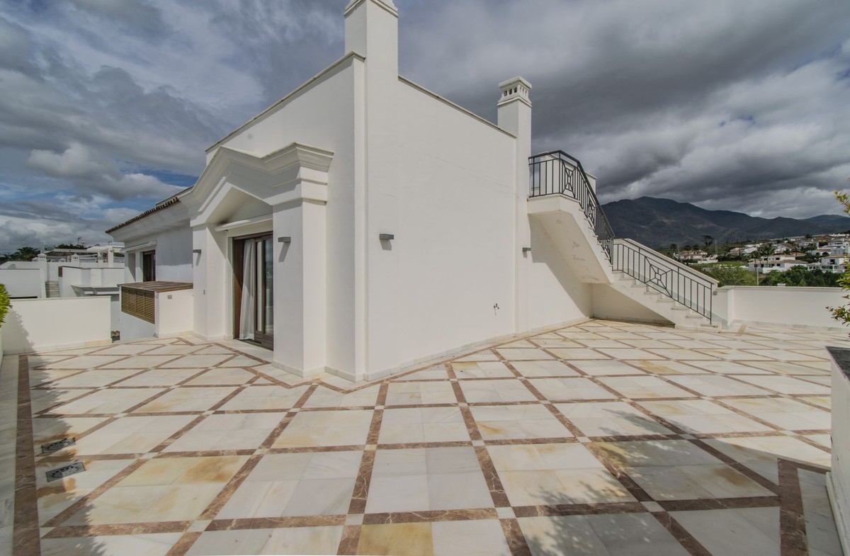 - UNIQUE BEACHFRONT PROPERTY WITH SEA VIEWS Spectacular luxury property with enormous terraces and stunning sea views, in a prime beachfront location in Estepona, just minutes from the port and surrounded by all kinds of amenities. This enormous penthouse, spread over two floors plus a solarium, offers a total of five bedrooms, five bathrooms plus a toilet, a large living room, a kitchen with a dining area, and enormous terraces with stunning sea views. Includes two parking spaces and a storage room. Located within a luxurious development with direct access to the beach, 24-hour security, swimming pools, a gym, a spa, etc. An ideal property for clients who want to enjoy a large beachfront property with sea views.