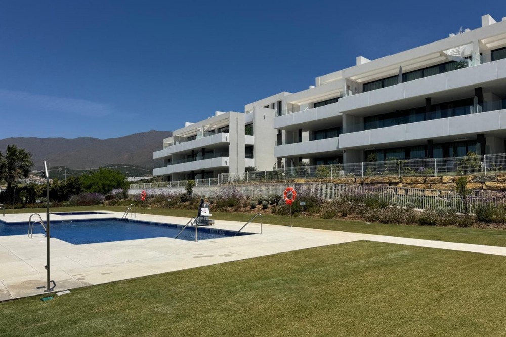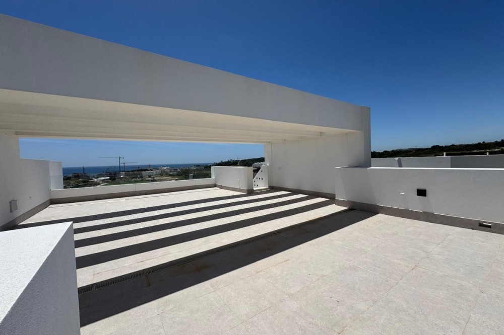 - Beautiful newly built three-bedroom penthouse with a south facing terrace in the urbanization Azahar de Estepona. From the living room you have direct access to the huge terrace, where you can enjoy the sun and the beautiful views of the sea and the mountains. The open kitchen is equipped with all comforts and has direct daylight. The master bedroom has an en-suite bathroom and the other two share a bathroom with shower. All bedrooms have fitted wardrobes. From the terrace you have access to the huge solarium with panoramic views via a staircase. The complex has a large outdoor swimming pool located in a beautiful garden. There is also a communal gym. All necessary amenities are within walking distance, including golf courses, the beach and shopping centres with supermarkets and restaurants. Estepona is less than 5 minutes away by car, Marbella 30 minutes and Málaga airport less than 60 minutes away. The property is unfurnished and is sold without furniture.
