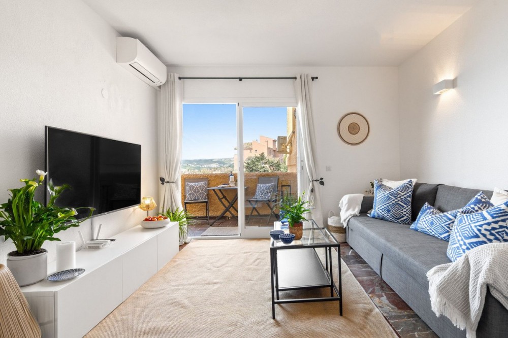 - This beautifully renovated 1-bedroom apartment offers a rare opportunity to enjoy contemporary living in one of Estepona’s most sought-after coastal enclaves. Situated just 200 metres from the beach and less than a 5-minute stroll from the vibrant marina, this property combines lifestyle and location in perfect balance. The apartment is located on the middle floor of a well-maintained building within a gated community. It benefits from a bright open-plan layout with a fully equipped kitchen, dining and living area, all opening onto a private terrace with direct views over Cristo Bay and the sea. The bedroom also enjoys the same spectacular outlook, making this home ideal for waking up to inspiring Mediterranean panoramas. The complex features a communal swimming pool—an amenity not commonly found in many of the neighbouring developments—adding real value for both residents and potential renters. Thanks to its exceptional location, low maintenance design and strong short-term rental potential, this property is perfectly suited as a holiday home, investment, or easy lock-up-and-leave bolt-hole on the Costa del Sol. A turnkey beachside gem with the best of Estepona at your doorstep.