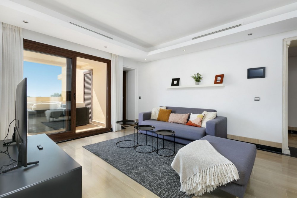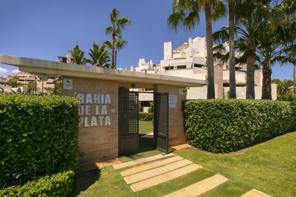 - Stunning 3 bed duplex with private rooftop pool located in the exclusive beachfront urbanisation Bahia de la Plata. Perfectly positioned with direct beach access and a short walk into the centre of Estepona and only 15 minutes drive from world famous Puerto Banus make this beautiful property the epitome of convenience. The community is gated and enjoys 24 hour security and concierge, large gymnasium with top quality weights and equipment, indoor spa centre with heated swimming pool, Turkish bath & sauna, padel tennis court & two large outdoor pools. The development is a short walk to a large number of restaurants and beach clubs including the famous Laguna Beach Club and even supermarkets. The apartment itself is built to a high standard & comes with underfloor hearting, electric roller shutters, jacuzzi bath and hot and cold air conditioning. The property is distributed with two bedrooms & bathrooms on the lower level with large sitting room leading out to a nice terrace with beautiful sea views, there is an internal staircase that leads up to another large terrace area, the 3rd bedroom & the large rooftop pool that belongs to the apartment. The perfect place for all day sun lovers where you can dip in and out of the privacy of your very own pool. Private underground parking space and storage are included. This property is stunning and must be viewed to be fully appreciated!