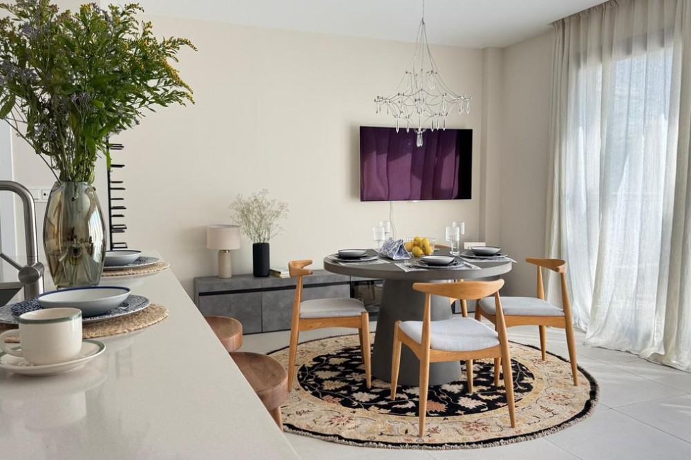 - Spacious Apartment with Sea Views in Las Mesas Homes A fully renovated three-bedroom, two-bathroom apartment for sale, located in the secure and well-maintained gated community of Las Mesas Homes. The property has undergone a complete renovation — everything is brand new, modern, and finished with great attention to detail. The open-plan kitchen and living area lead out to a large terrace with beautiful sea views — perfect for relaxing or entertaining. One of the bedrooms features a private walk-in closet. Both bathrooms are stylish and offer a high level of comfort. The urbanisation is quiet and green, with a communal swimming pool and landscaped areas. The price includes an underground parking space as well as a private storage room — a practical solution for extra space. Ideally located close to supermarkets, restaurants, parks, and all essential amenities. A perfect choice for both permanent living and investment.