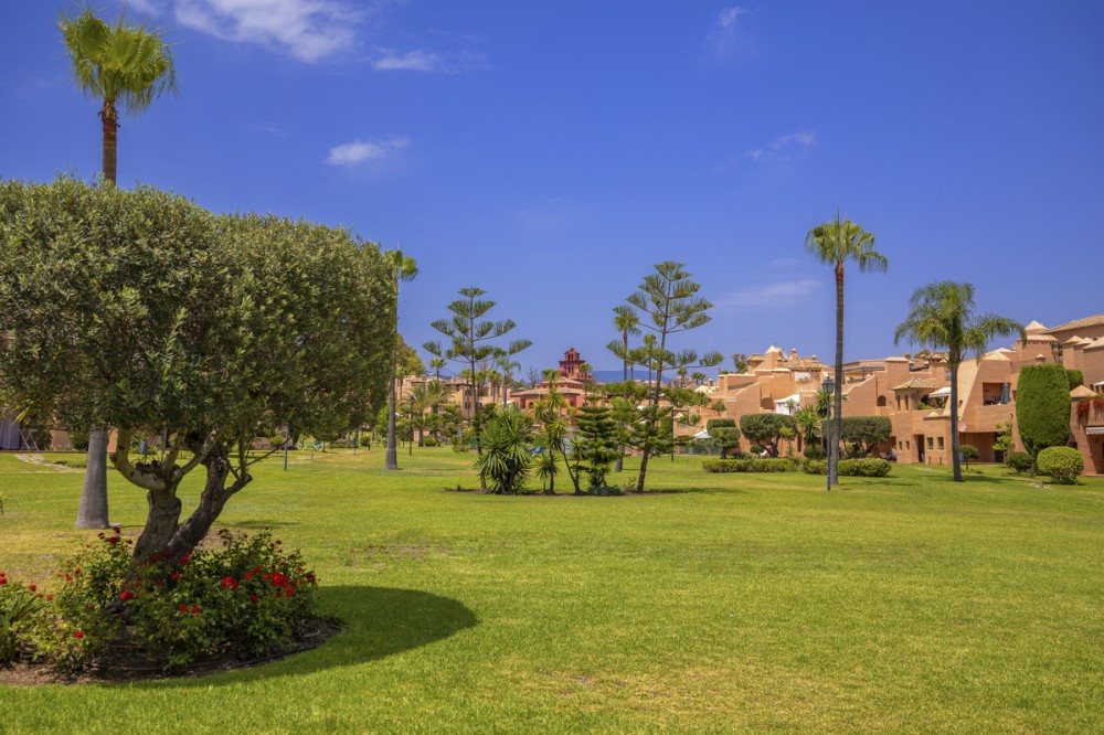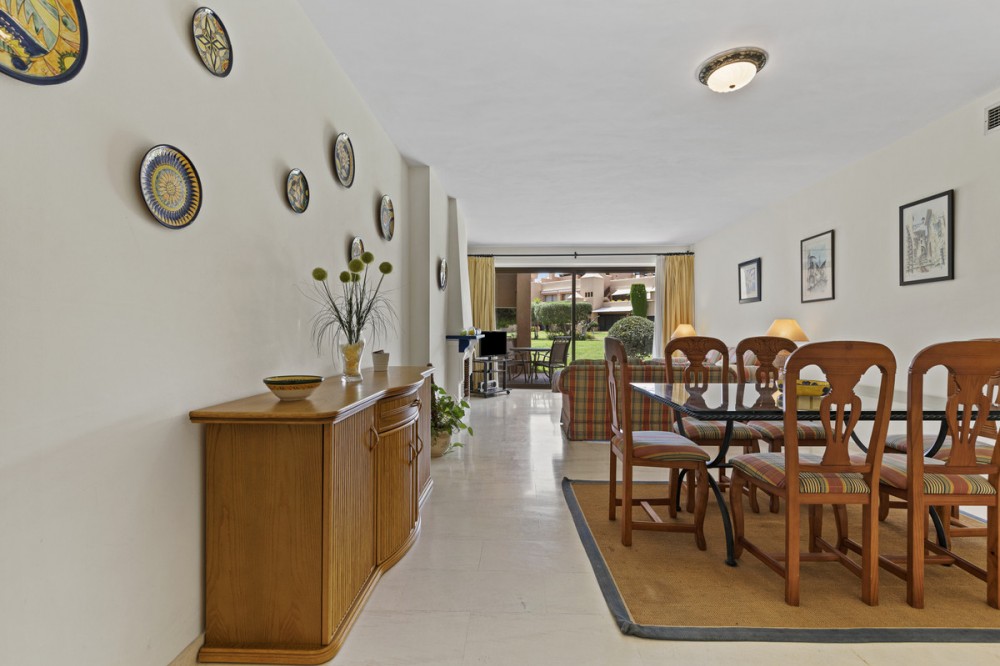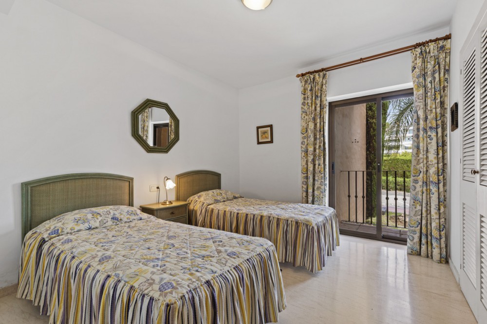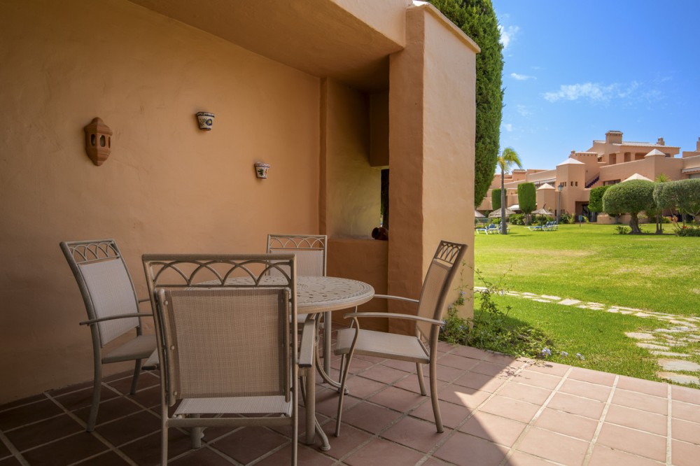 - Located within a very pleasant, secure residential community offering 24/7 security, this beautifully presented apartment combines comfort and resort-style amenities. Residents enjoy access to three swimming pools, tennis and paddle tennis courts, and beautifully maintained mature gardens. The apartment features two generously sized bedrooms, both with en-suite bathrooms and fitted wardrobes. The master bedroom opens onto a sunny, covered terrace that overlooks the communal gardens and pool—perfect for relaxing or entertaining. The second bedroom offers added charm with a Juliette terrace, allowing natural light and garden views to flood the space. Inside, the apartment is bright and inviting, with air conditioning throughout for year-round comfort. The spacious living area provides direct access to the terrace, garden, and pool area, enhancing the sense of indoor-outdoor living. An exterior awning offers shade on sunnier days, extending the use of the terrace. Additional features include communal parking, direct access to recreational facilities, and a sun-drenched layout that makes this apartment a true gem in one of the area’s most sought-after communities.