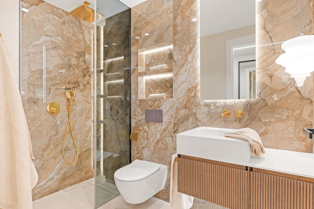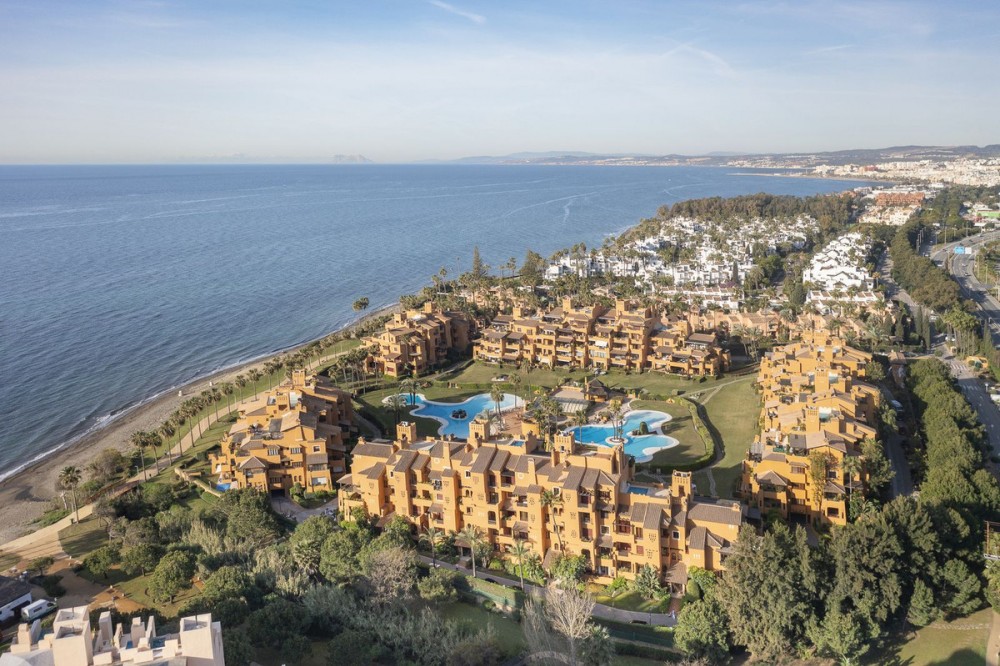 - This fully remodelled 4 bedroom and 4 bathroom apartment is an amazing opportunity for people who are looking for luxury and comfort in a stunning beachfront location. The spacious living and dining room and the luxurious master bedroom with its en-suite bathroom and walk-in wardrobe both have direct access to the impressive south facing terrace with panoramic sea views. Los Granados del Mar is one of the most exclusive urbanizations on the New Golden Mile with breathtaking views of the Mediterranean Sea. Its combination of beautifully maintained gardens and luxurious facilities such as an on-site restaurant, a heated indoor pool, 2 outdoor pools, a gym, a sauna, a Jacuzzi and 24h security make this community one of a kind. It has direct beach access and is very close to all amenities, shops, schools, high class restaurants, the newly build Laguna complex and the center of Estepona. This bright 187 m² apartment boasts a brand-new open-concept designer kitchen with premium German appliances and luxurious extras, including a Bang & Olufsen sound system, an electric fireplace, and a freestanding bathtub. Underground parking with direct lift access to the apartment as well as a secure storage room are included in the price.