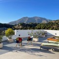 - Exclusive Penthouse in Mirador de Estepona Hills with Unmatched Panoramic Views Introducing a truly spectacular penthouse in the prestigious Mirador de Estepona Hills residential complex. Perfectly oriented to the southwest, this home offers breathtaking 360-degree views of the Mediterranean Sea, Gibraltar, the African coastline, and Marbella’s iconic skyline. Originally designed with three bedrooms and two bathrooms, the property has been meticulously transformed to create a contemporary and versatile layout, featuring approximately 200 m² of interior living space and 200 m² of surrounding terraces. Upon entering, you are welcomed into an elegant open-plan concept: • A spacious designer kitchen to the right combines style and functionality. • To the left, a walk-in dressing room provides convenience and storage. • Behind the kitchen, a generous utility/storage room offers additional flexibility. From the kitchen, you step into a large office space that flows seamlessly onto a private terrace, perfect for installing a jacuzzi or plunge pool, with unparalleled views of Sierra Bermeja. To the left, a bright dining area enclosed with glass curtains invites natural light and panoramic views, providing access to one of the most impressive wrap-around terraces on the Costa del Sol – a perfect setting for year-round outdoor living. The sleeping area, located straight ahead from the entrance, comprises two bedrooms and two bathrooms, including a master suite with its own en-suite bathroom. Additional features include two private parking spaces, two storage rooms, and direct lift access to the penthouse, ensuring absolute privacy and exclusivity. A unique home where luxury meets tranquility – the perfect retreat in the heart of the Costa del Sol.