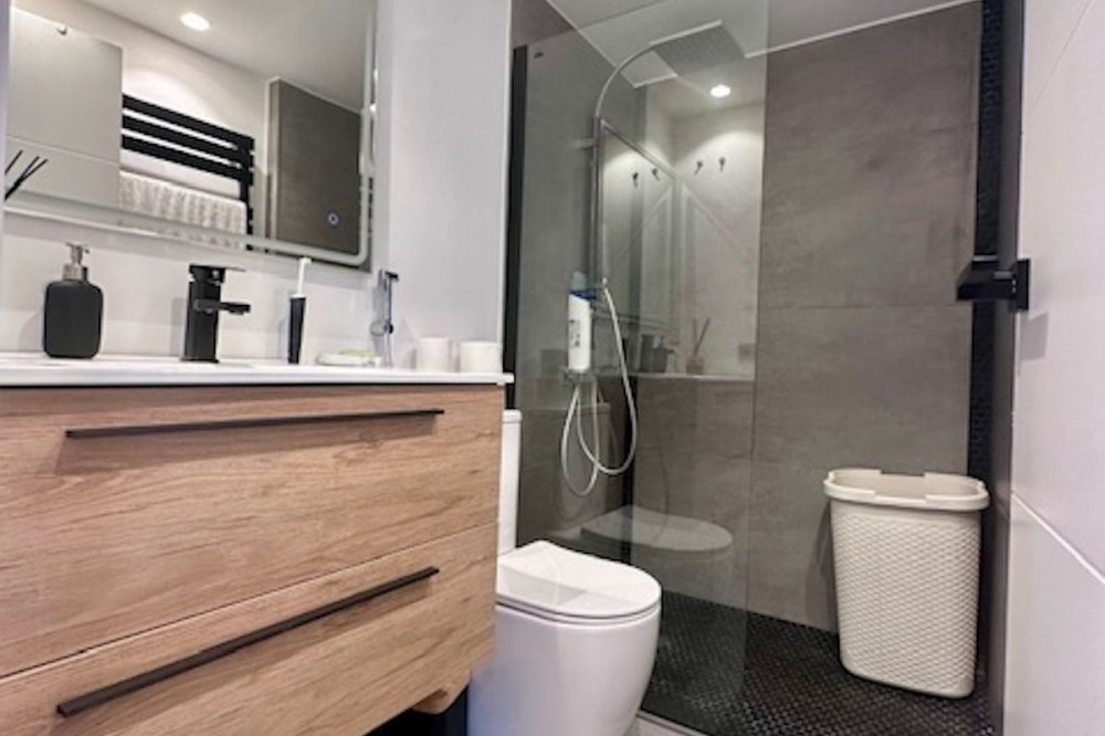 - MODERN GROUND FLOOR APARTMENT - FULLY RENOVATED AND WITH PRIVATE POOL Magnificent apartment with a private garden and pool, located in one of the best and most sought-after areas of Estepona (just 5 minutes from San Pedro de Alcántara). Urb. El Paraiso, walking distance to all amenities and the golf course, is a private community with a communal pool and gardens. This property has been completely renovated and modernized with the best materials on the market (high-end, in each of its rooms). Spacious entrance hall, with access to the majestic living room with a fully open kitchenette. The kitchen features all top-brand appliances and has been built with a central island and plenty of storage space. Ideal for families. Living room with separate areas, including a full bathroom for guest use. To the right of the entrance hall, we find the bright and spacious guest bedroom with an en-suite bathroom, also renovated. The master bedroom, ultra-modern, has been divided into two parts: a bathroom area with a shower, and a separate toilet area (his and hers). A huge, well-divided dressing room, with lighting, is custom-built. The master bedroom has direct access to the home's garden, as does the living room. We have a large covered porch for BBQs, summer dinners, and an outdoor area with a magnificent private pool. On the porch, we have a large enclosed storage space for all garden utensils. The apartment also has a direct entrance to the home from the street, through the private garden area. This makes it easy to carry shopping bags, etc. This is an apartment with a modern, easy-to-use, and extremely practical style, decorated with magnificent taste, and ideal for either a first or second home in Spain. The location is unbeatable, just 5 minutes from San Pedro de Alcantara and 10 minutes from Marbella and Estepona. Don't hesitate to call us to schedule a viewing. This property is truly worth a visit. You won't regret it!