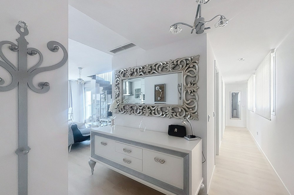 - Located in the very centre of Estepona, this modern duplex penthouse offers the perfect combination of urban convenience and Mediterranean charm. Its privileged setting places you within walking distance of shops, schools, playgrounds, public transport, and just minutes from the beach, the port, and several golf courses. The property boasts 187 m² built (101 m² interior), smartly distributed over two levels. It features 3 bedrooms and 2 bathrooms (one en suite), making it ideal for families or for those seeking extra space. The home is presented in excellent condition, fully furnished and equipped with air conditioning and an aerothermal system for maximum energy efficiency. The open-plan kitchen connects seamlessly with the living and dining area, which flows out to a private terrace with wonderful views of the mountains. The upper level is home to a fantastic private 30m² solarium, perfect for sunbathing, entertaining, or simply enjoying the Costa del Sol lifestyle. Additional features include a laundry room, storage room, and private parking space included in the price. On the rooftop of the building, residents also benefit from a communal swimming pool, an ideal spot to relax on warm summer days. Built in 2021 and situated on the 7th floor with lift, this penthouse is ready to move into and offers the rare chance to enjoy a modern home in one of Estepona’s most desirable areas. Key Features 187 m² built | 101 m² usable 3 bedrooms | 2 bathrooms (1 en suite) Private terrace + solarium Private parking & storage room Built in 2021 | Excellent condition Communal rooftop pool 7th floor with lift A unique opportunity to experience Estepona at its best — combining location, comfort, and lifestyle in one exceptional property.