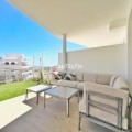 - Two-Bedroom Apartment with Spacious Terrace and Sea Views in One Eighty, Estepona We are delighted to present this elegant ground-floor apartment in the prestigious One80 residential complex. With two bedrooms and two bathrooms, it offers the perfect balance between comfort and style, making it ideal both for permanent living and as a holiday retreat by the sea. Upon entering the apartment, you are welcomed by a bright and spacious living room that combines a comfortable lounge with sofas, a dining area, and a fully equipped open-plan kitchen. Large sliding doors flood the space with natural light and provide direct access to the generous terrace. To the left lies the first bedroom with its own en-suite bathroom, while further along you will find the master bedroom, also featuring an en-suite and direct access to the terrace. The true highlight of this property is its very large covered terrace, which connects all rooms, including the living room, kitchen, and both bedrooms. This exceptional outdoor space is designed for enjoying the Mediterranean lifestyle, with a lounge area furnished with sofas, a dedicated barbecue space, and a private section with natural grass where you can create your own green garden corner. From here, you can enjoy beautiful sea views, making the terrace a perfect place to relax or entertain guests throughout the year. The One80 complex provides excellent facilities such as an outdoor swimming pool, a modern gym, and a covered area with special flooring designed for yoga and Pilates. Its location is equally appealing, just three minutes from Colegio San Juan XXIII and Estepona Football Center, with restaurants and supermarkets within walking distance. The beach and the Elba Estepona Gran Hotel & Thalasso Spa are only five minutes away, while Valle Romano Golf Club can be reached in ten minutes and Estepona Golf in fifteen. Estepona’s charming old town is also only fifteen minutes away, the Sotogrande port twenty minutes, Puerto Banús twenty-five minutes, and Marbella’s historic center just thirty-five minutes by car. This apartment is the perfect choice for those who value comfort, spacious terraces, sea views, and life in a modern residential complex with excellent facilities in a prime location.