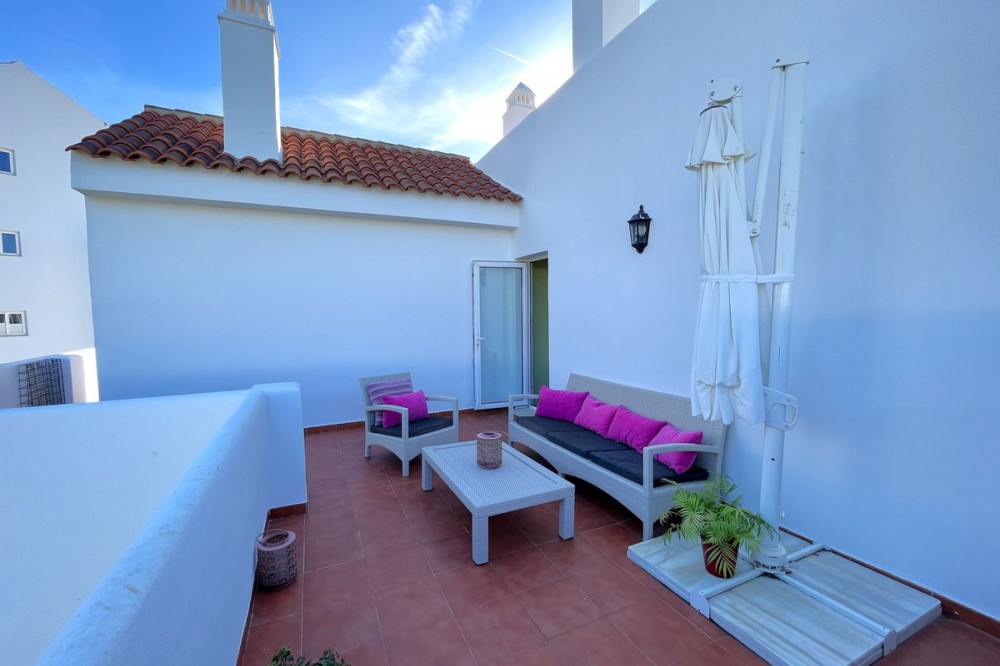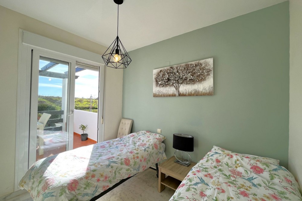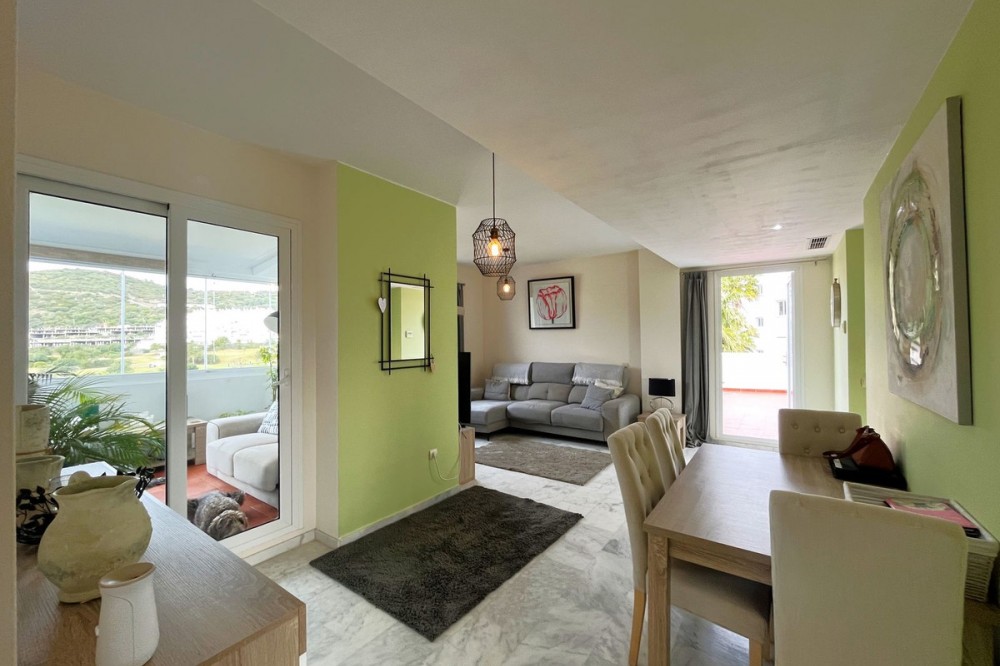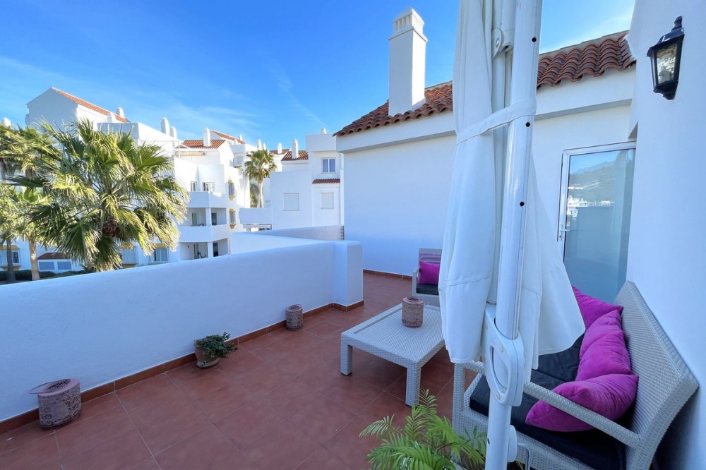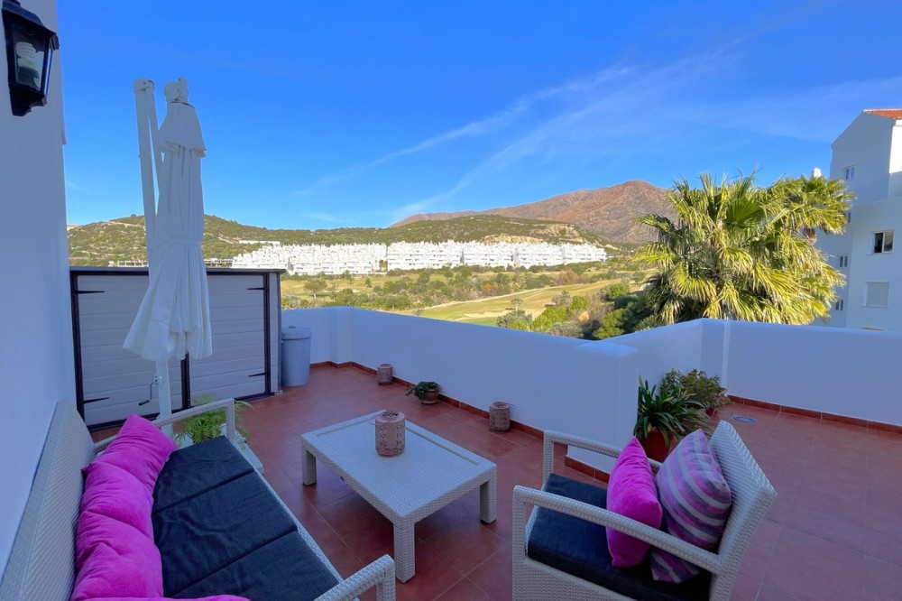 • EXCLUSIVE PENTHOUSE ON THE FRONTLINE OF GOLF IN ESTEPONA!! Located in Valle Romano Golf & Resort, one of the most prestigious golf courses on the Costa del Sol, this penthouse offers a unique opportunity to live in an area undergoing strong urban development, surrounded by new luxury developments and with great potential for capital appreciation. Just 5 minutes by car from the beach and 10 minutes from Estepona’s charming historic center, the property is also close to supermarkets, schools, and the new Estepona High-Resolution Hospital, ensuring both comfort and quality of life. The property stands out for its large wrap-around terrace with stunning open views of the golf course and the mountains, the perfect spot to enjoy the sun and peace. Upon entering, you will find a bright and spacious living-dining room with access to a glass-enclosed terrace with sliding curtains, ideal as an additional living area. It also features a fully renovated and equipped kitchen with high-quality finishes. There are two bedrooms: the master bedroom offers generous fitted wardrobes and an en-suite bathroom with a window and bathtub; while the second bedroom is very bright and also has access to the terrace. The second bathroom has been renovated and includes a walk-in shower. The price includes an underground parking space, and the complex offers a communal swimming pool and well-maintained green areas. All in all, an ideal property whether as a permanent residence, holiday home, or investment. We highly recommend a visit – you will love it!