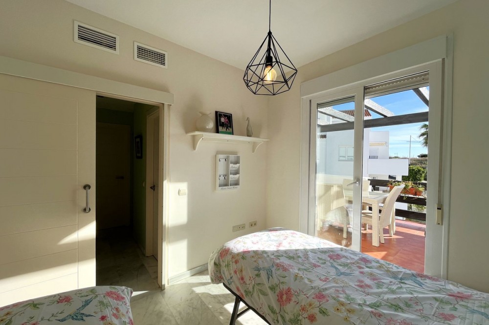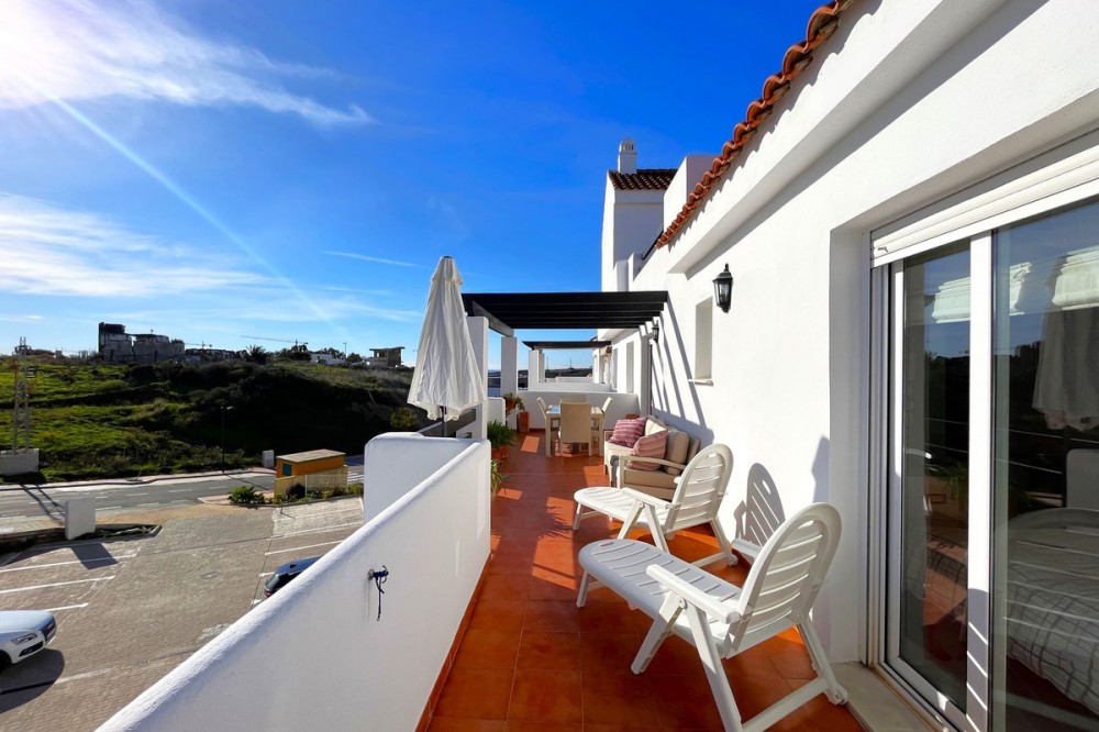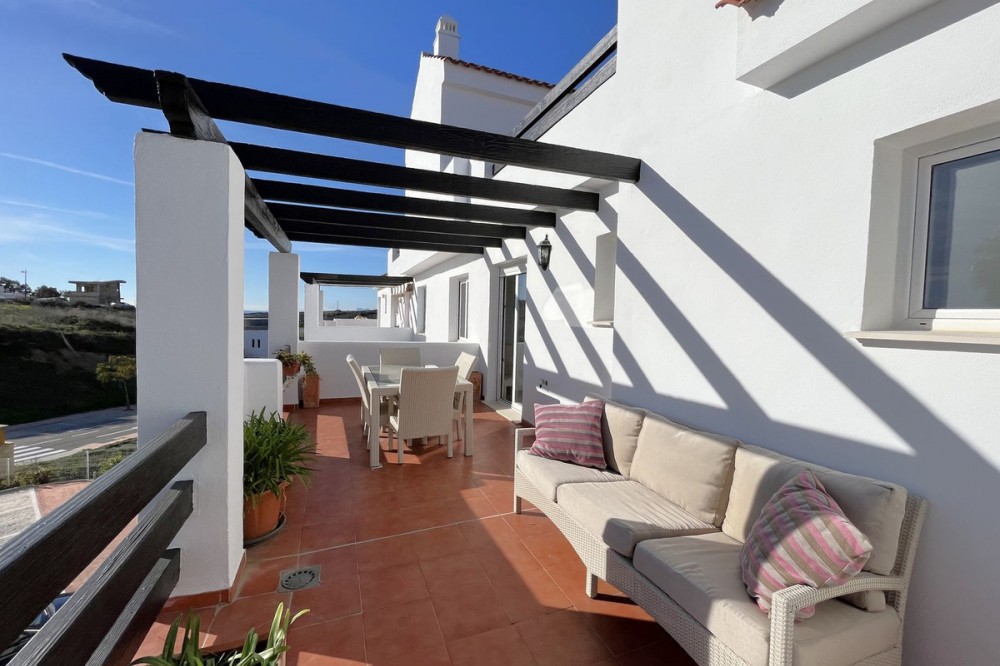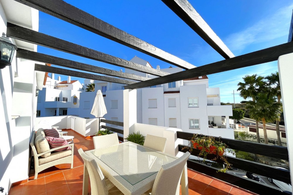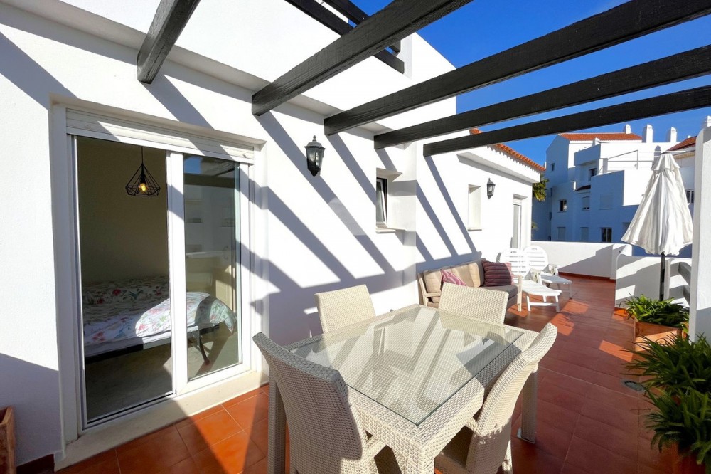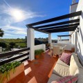 • EXCLUSIVE PENTHOUSE ON THE FRONTLINE OF GOLF IN ESTEPONA!! Located in Valle Romano Golf & Resort, one of the most prestigious golf courses on the Costa del Sol, this penthouse offers a unique opportunity to live in an area undergoing strong urban development, surrounded by new luxury developments and with great potential for capital appreciation. Just 5 minutes by car from the beach and 10 minutes from Estepona’s charming historic center, the property is also close to supermarkets, schools, and the new Estepona High-Resolution Hospital, ensuring both comfort and quality of life. The property stands out for its large wrap-around terrace with stunning open views of the golf course and the mountains, the perfect spot to enjoy the sun and peace. Upon entering, you will find a bright and spacious living-dining room with access to a glass-enclosed terrace with sliding curtains, ideal as an additional living area. It also features a fully renovated and equipped kitchen with high-quality finishes. There are two bedrooms: the master bedroom offers generous fitted wardrobes and an en-suite bathroom with a window and bathtub; while the second bedroom is very bright and also has access to the terrace. The second bathroom has been renovated and includes a walk-in shower. The price includes an underground parking space, and the complex offers a communal swimming pool and well-maintained green areas. All in all, an ideal property whether as a permanent residence, holiday home, or investment. We highly recommend a visit – you will love it!